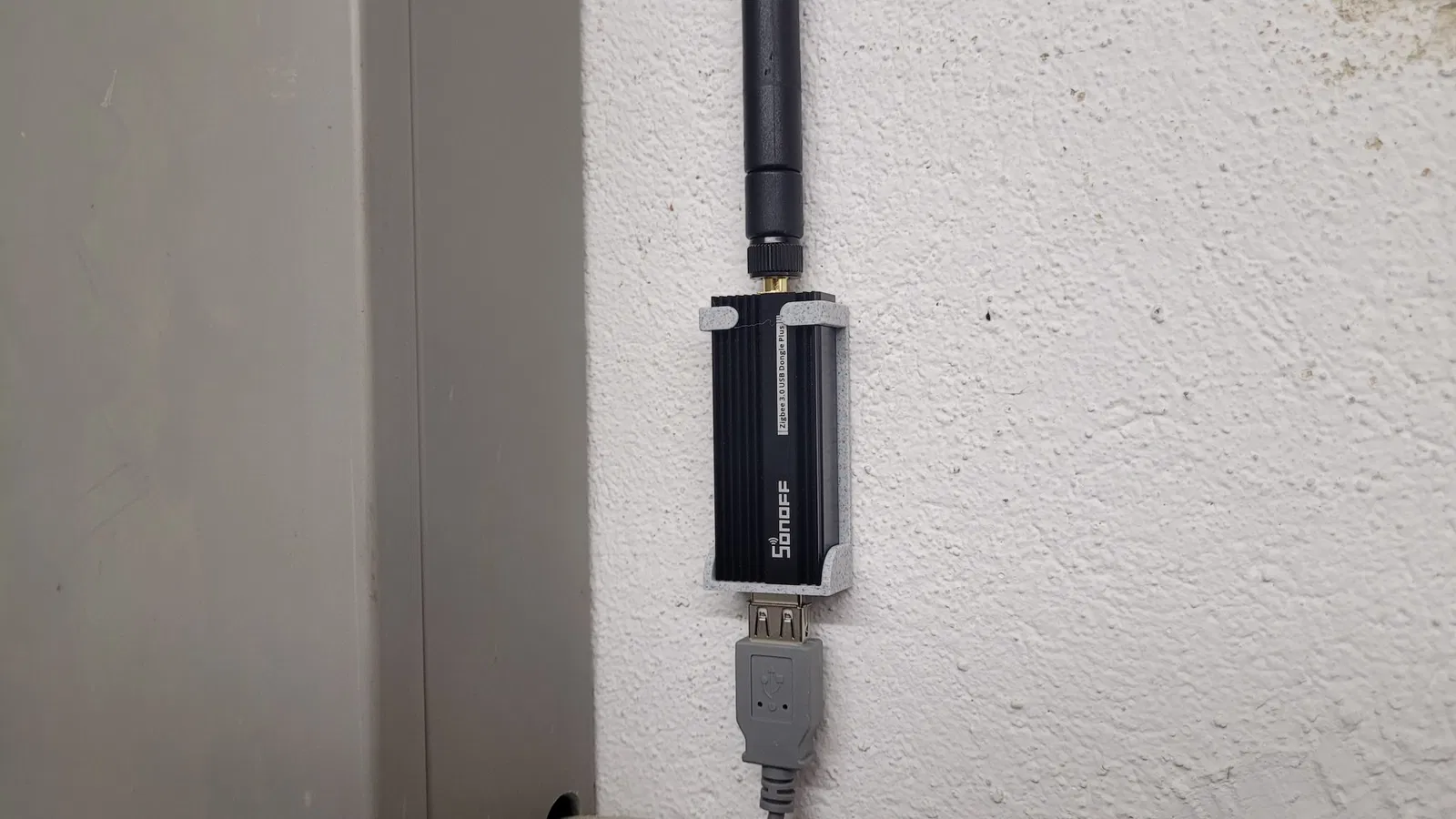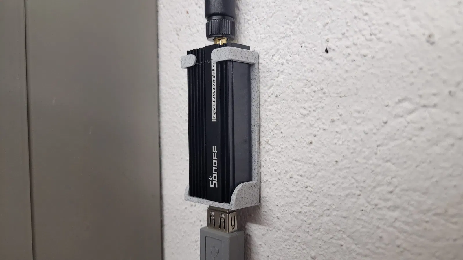 Đây là một giá treo tường đơn giản cho Dongle USB Sonoff Zigbee 3.0. Nó được gắn lên tường bằng các vít 4mm. Nó phù hợp với hầu hết mọi loại anten mà bạn muốn sử dụng vì anten đi kèm khá tệ.