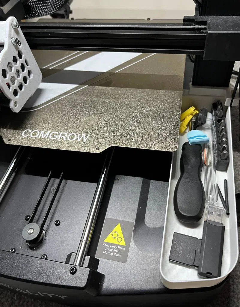 Mô hình hộp/thùng đựng đồ bên phải dành cho máy in 3D Ender 3 V3 SE. Có phiên bản ngắn hơn nếu bạn đã di dời chân đế màn hình LCD. Đừng quên bật supports khi in nha! Phiên bản bên trái cũng có sẵn.