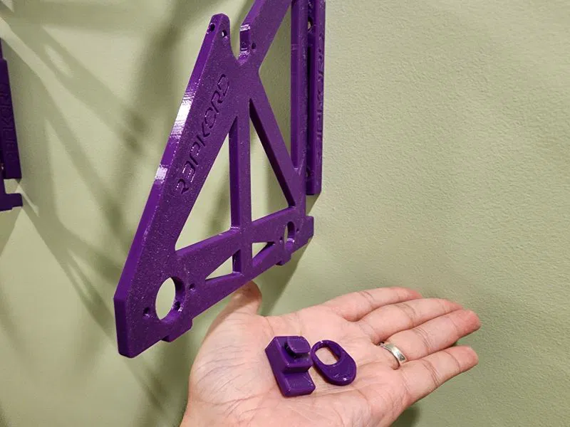 Các mẫu in này có thể in tốt mà không cần hỗ trợ ở hướng mặc định. Độ vồng tối đa là 50 độ. Tôi đã in chúng bằng loại Inland PETG+ giống như những bộ phận reprack khác mà tôi đang sử dụng, với cùng chiều cao lớp 0.4 mm và đầu phun 0.6mm mà tôi vẫn dùng – nhưng chủ yếu là do lười thay đổi cài đặt hơn là do cần thiết. Lẽ ra sẽ không có hoặc có rất ít áp lực lên các bộ phận này khi nghỉ, vì vậy bạn cứ tự do sử dụng bất kỳ loại sợi nhựa/cài đặt nào bạn muốn miễn là cho ra kết quả tốt.