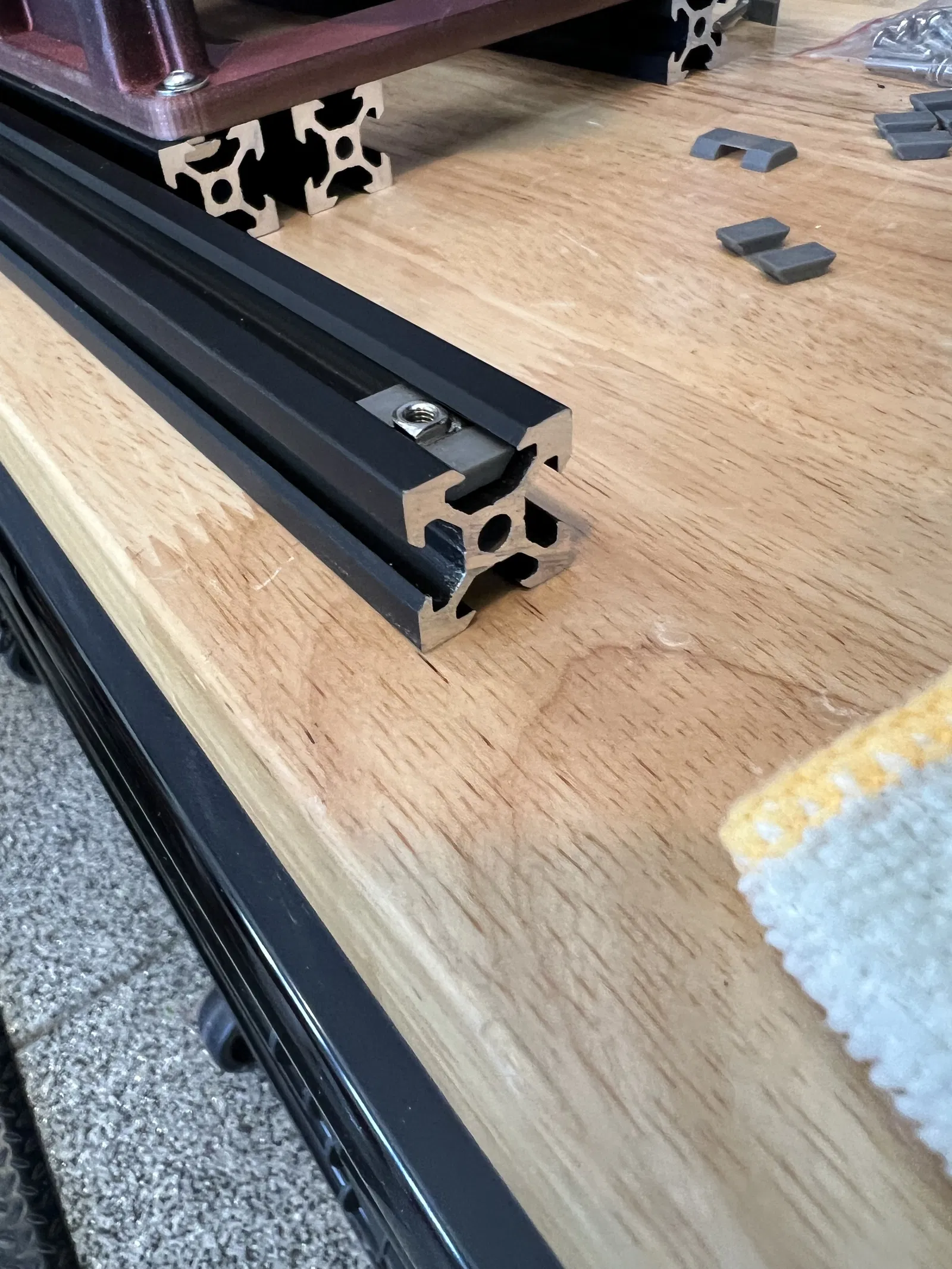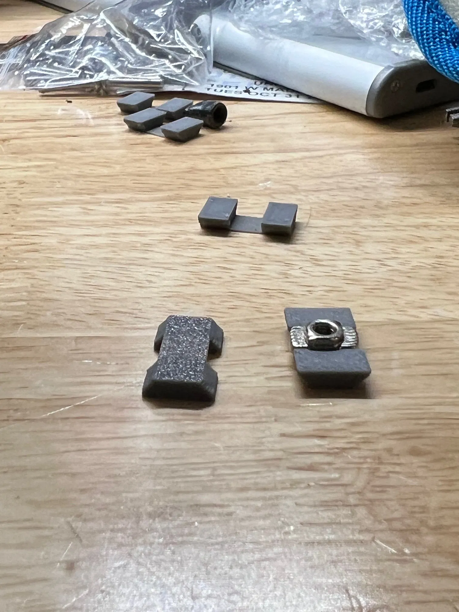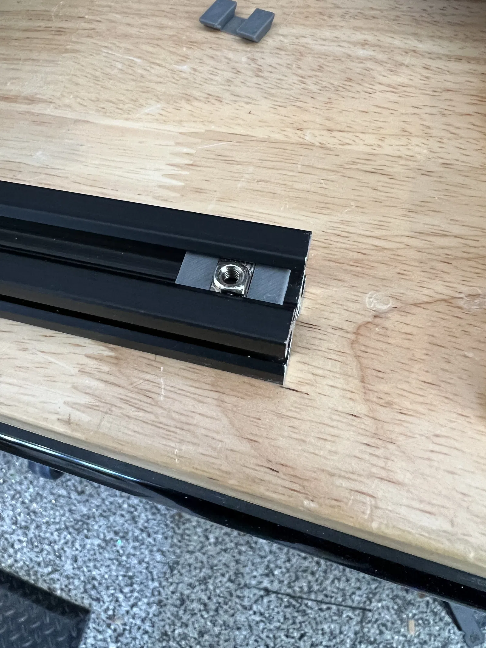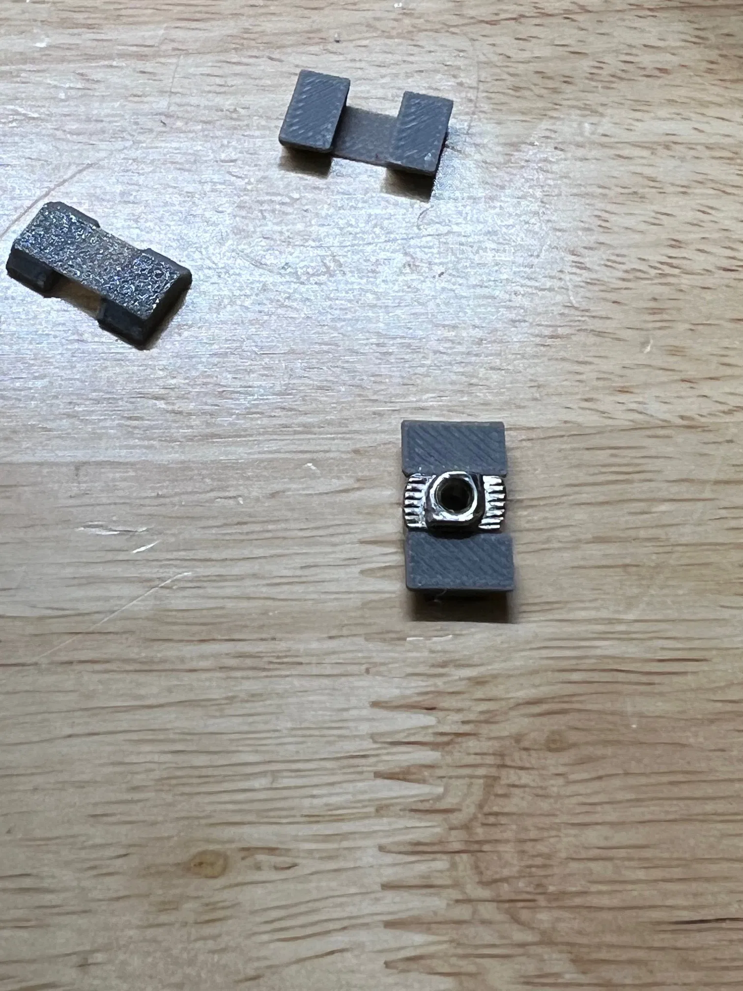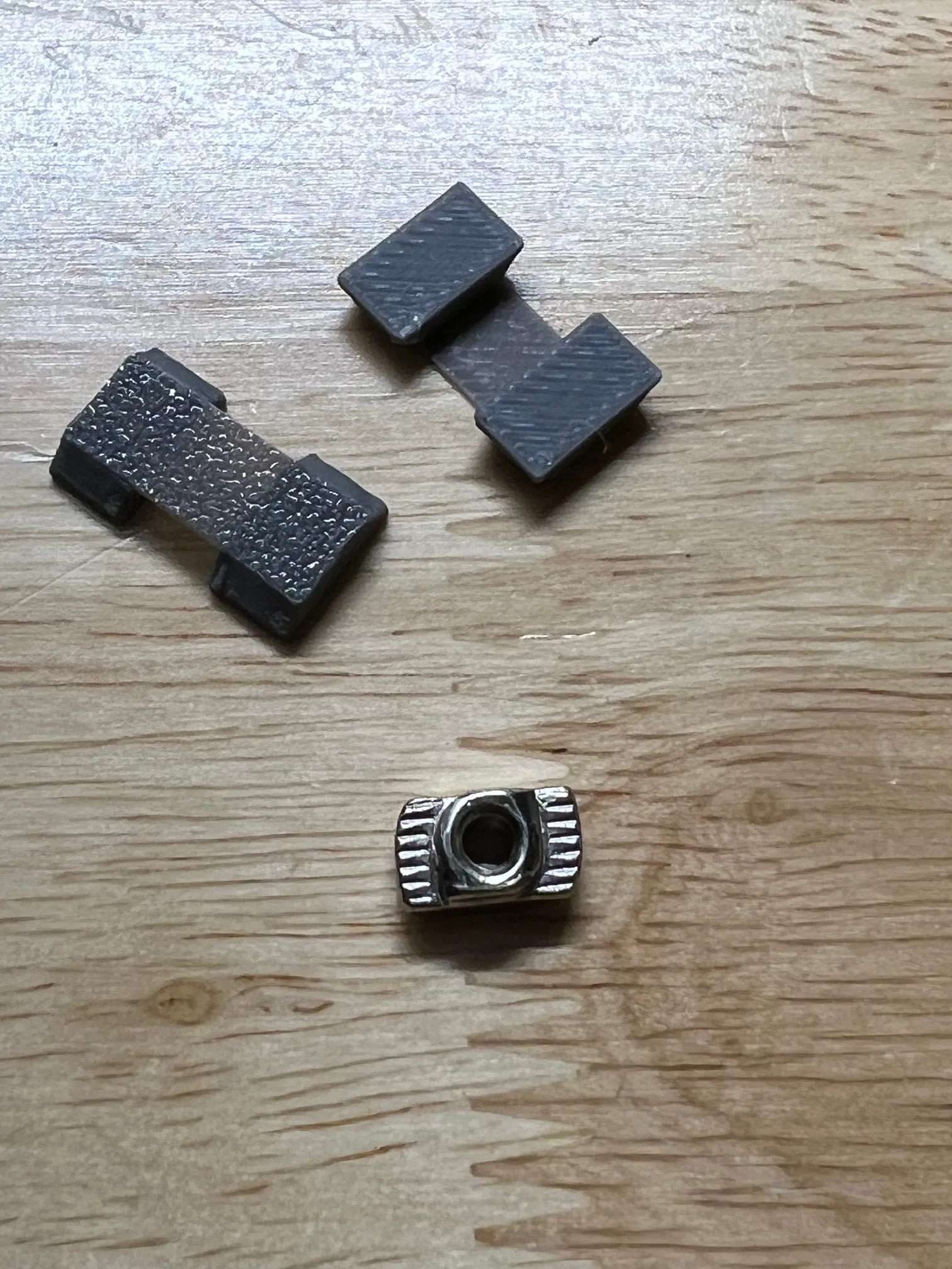 Khi xài loại rãnh trượt 20x20 á, mấy cái đai ốc đi kèm nó cứ xoay vòng vòng trong rãnh, làm mình gắn đồ khó khăn. Tao có làm cái đế giữ nè, xài ngon lành cho tao luôn. Mày nhét đai ốc vô cái đế này, rồi cả cái cụm đó mày trượt vô rãnh, nó hơi khít tí nhưng vẫn trượt được nha, và đặc biệt là đai ốc không còn xoay nữa, tha hồ mà gắn đồ luôn. Dưới này là hình tao chụp lúc đang xài đó, với mấy cái đai ốc đi theo rãnh trượt của tao nè.