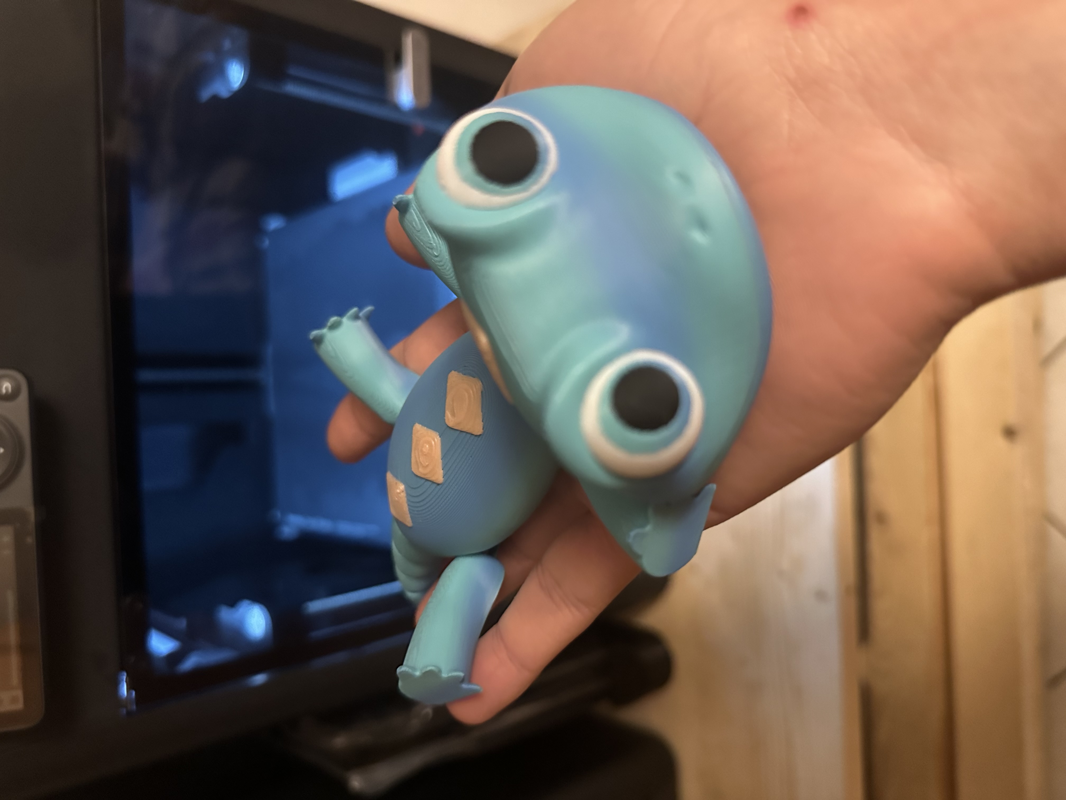 Tạo phẩm mới nhất của tui là Bruni trong Frozen 2 phiên bản dẻo, một chú thằn lằn em bé cực kỳ dễ thương. Nếu gặp vấn đề dính bàn in, hãy thử thêm BRIM. Tui đã sử dụng các loại PLA của BambuLab như Basic White, Gradient, PLA-CF và Glow in the Dark. Tui rất mong được thấy sản phẩm của các bạn!