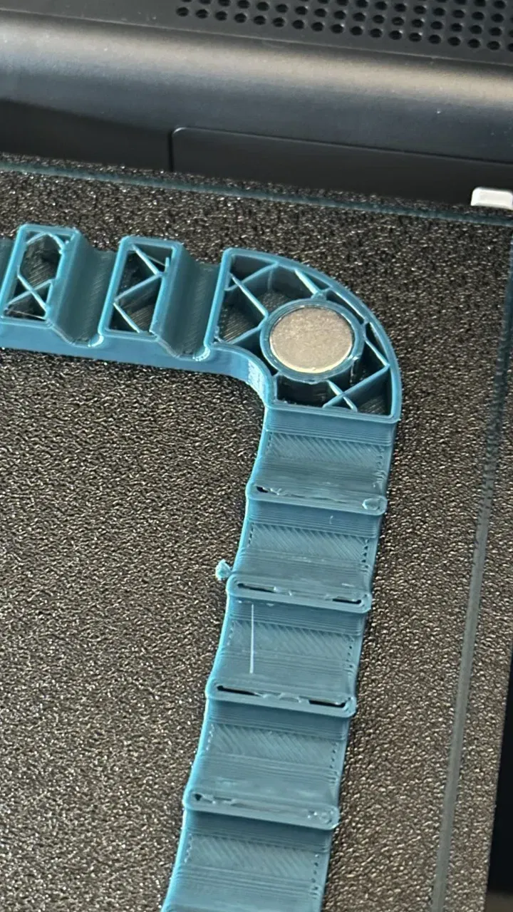 Tôi đã in nó với chiều cao lớp 0.2mm, 3 lớp tường và 10% mật độ ruột. Tôi đã thêm một lần tạm dừng trước lớp 32, gắn nam châm và tiếp tục in.