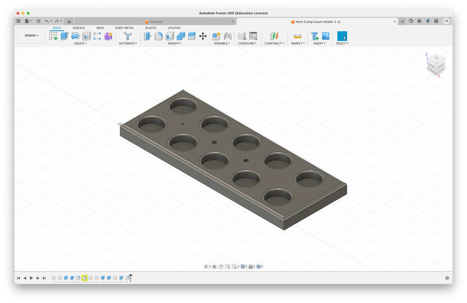 Đây là cái vật thể Fusion 360 thứ hai mình làm và chia sẻ để in. Cái khay này để vừa cả mấy cái insert comparator đạn và headspace của Hornady. Có luôn chỗ cho lục giác và mấy con ốc vít dự phòng. Mấy cái insert đạn có OD lớn hơn chút nên không xài lẫn với insert headspace được. Lục giác thì hơi chật, phải ấn vô, còn mấy con ốc thì vặn vô dễ dàng nên không bay lung tung nếu có lỡ làm rớt.