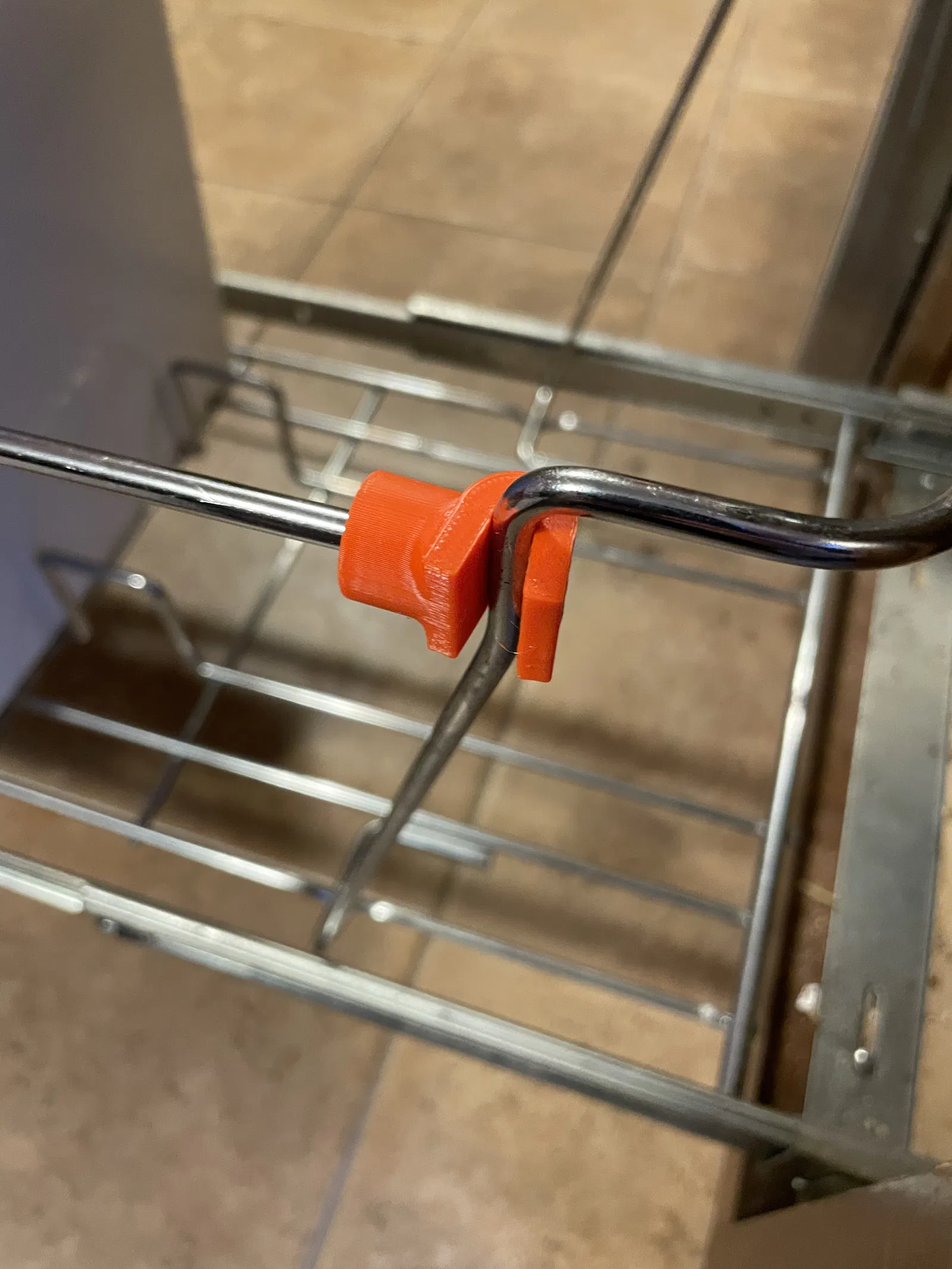 Cái kẹp này để thay cho kẹp thùng rác tủ nhà bạn. File có 90% infill, khuyên dùng PETG cho chắc. Kẹp này gắn vừa cho thanh Ø5.49mm, có thể tùy chỉnh cho thanh lớn hơn. Bạn có thể khoan nhẹ để điều chỉnh độ khít.