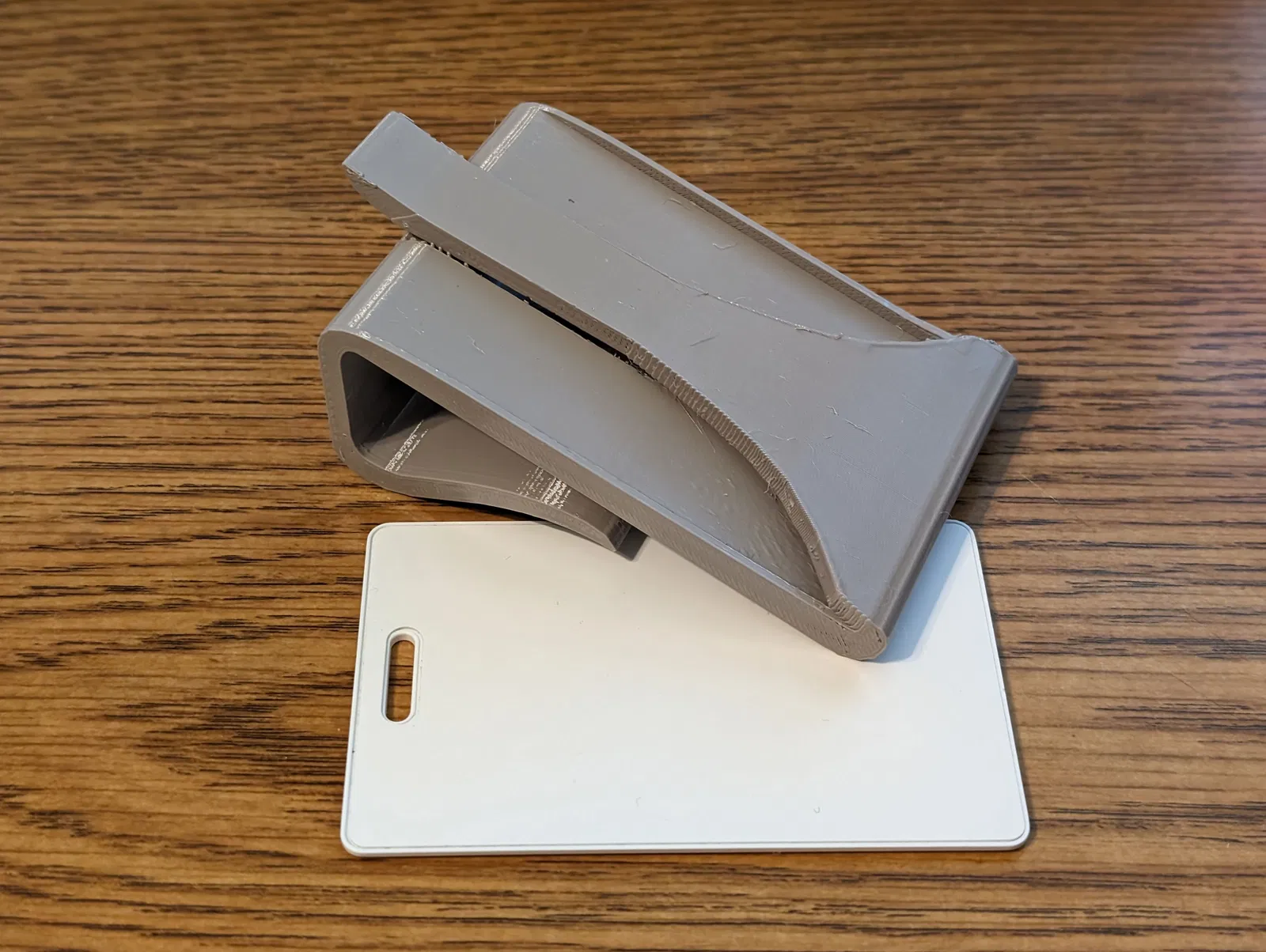 Trong các ảnh ví dụ của tôi, thẻ là thẻ RFID dùng cho bãi đậu xe. Kích thước thẻ của bạn có thể khác nhau, vì vậy hãy đo đạc cẩn thận và kiểm tra độ vừa vặn trước khi in.
