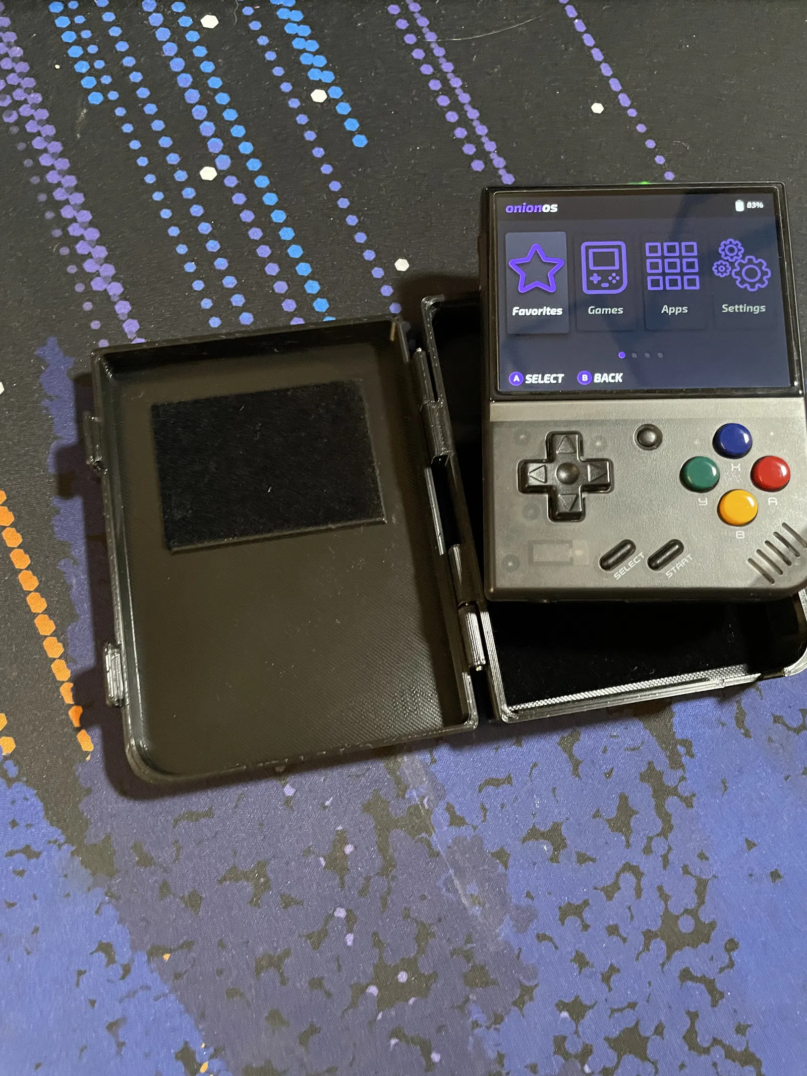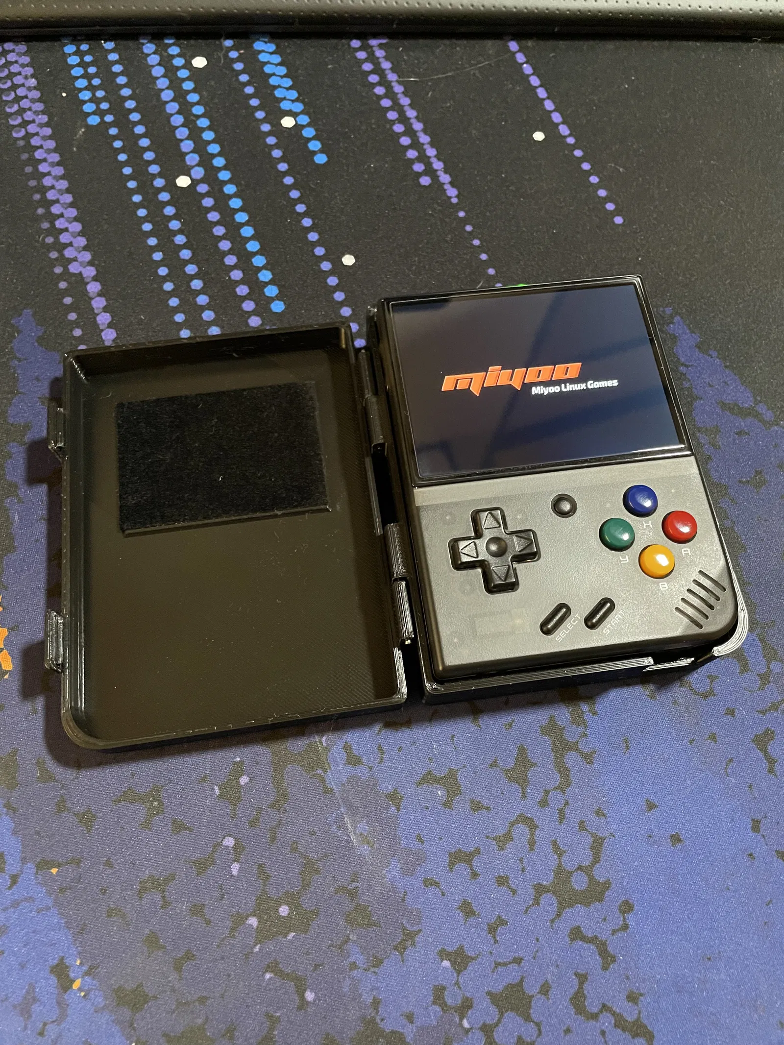 Đây là một cái vỏ dạng snap-fit (bấm gài) dành cho Miyoo Mini Plus. Nó được thiết kế để dùng chung với lớp lót nỉ để tạo độ ôm khít.
