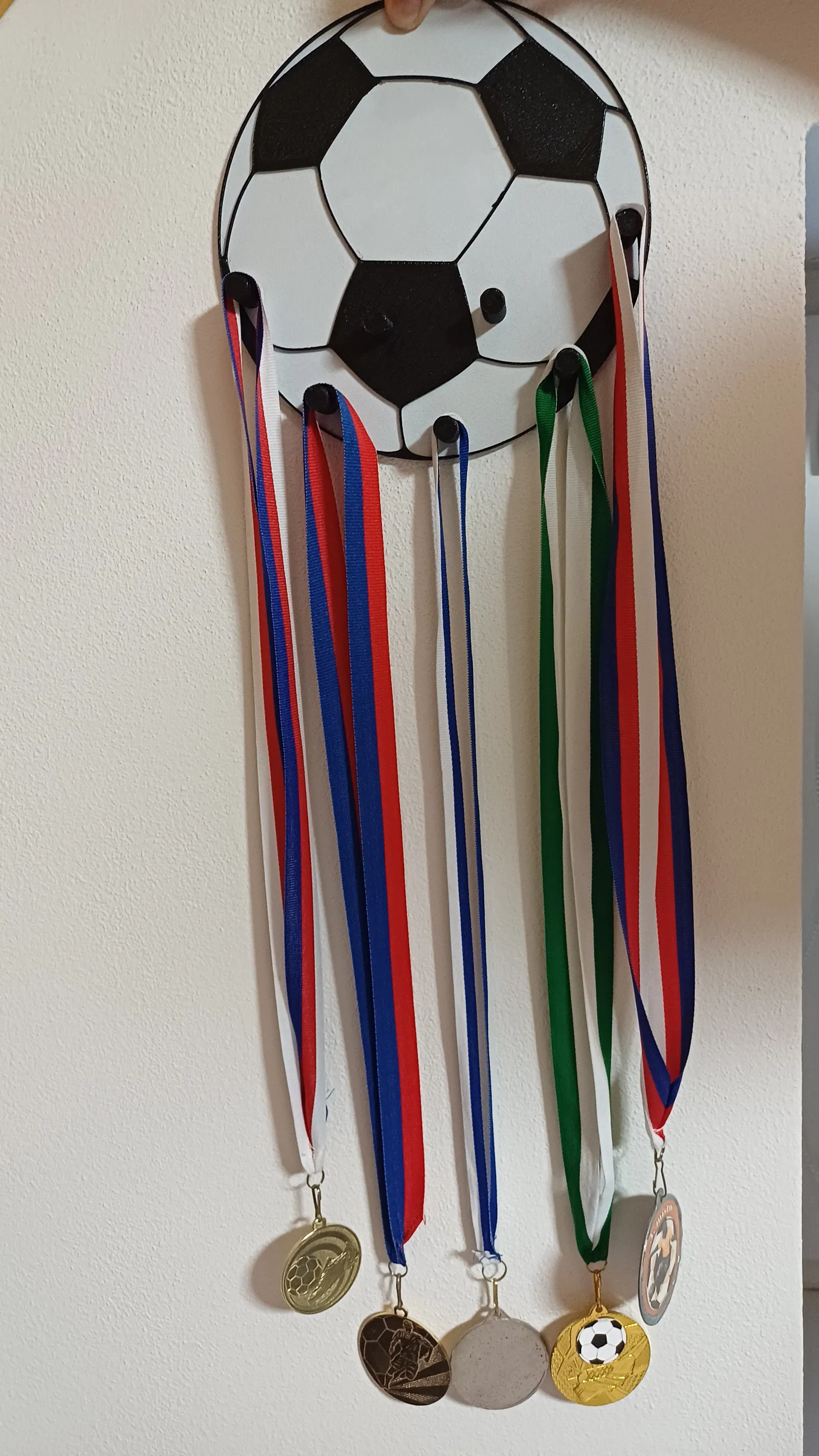 Móc treo huy chương hình quả bóng đá, lý tưởng cho các vận động viên bóng đá và người hâm mộ muốn trưng bày thành tích của mình. Thiết kế độc đáo, làm nổi bật bộ sưu tập huy chương của bạn. Sản phẩm là món quà tuyệt vời cho bất kỳ ai đam mê bóng đá.