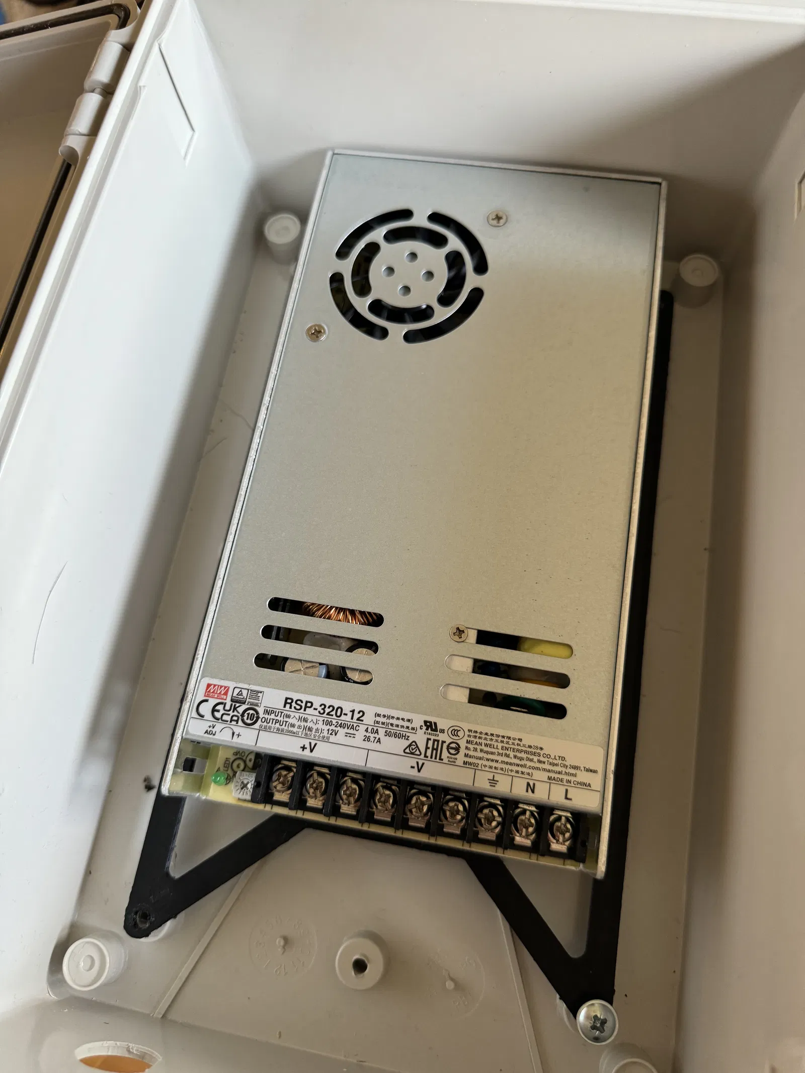 Giá đỡ bộ nguồn Meanwell RSP-320 hoặc LRS-350 cho Hộp Bud Industries NBF-32016. Phiên bản này có nhiều tùy chọn gắn và file Fusion360 đi kèm để bạn dễ dàng tùy chỉnh. Có hai phiên bản: đơn giản và có lỗ nâng để gắn phụ kiện.