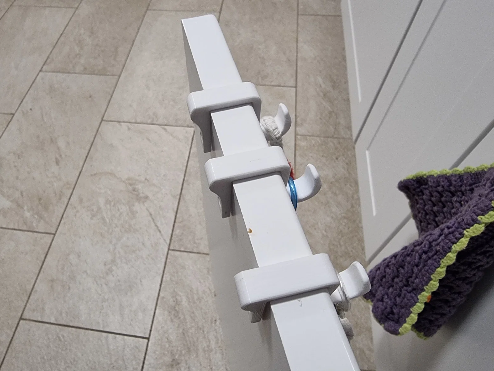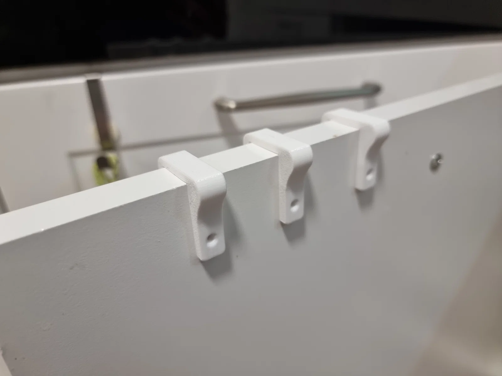 Móc treo khăn nhà bếp gắn dưới tủ, rộng 10mm, thiết kế để phù hợp với cửa dày 20mm và có khoảng hở 4mm, giúp tiết kiệm không gian và giữ cho khăn bếp luôn gọn gàng, dễ lấy.