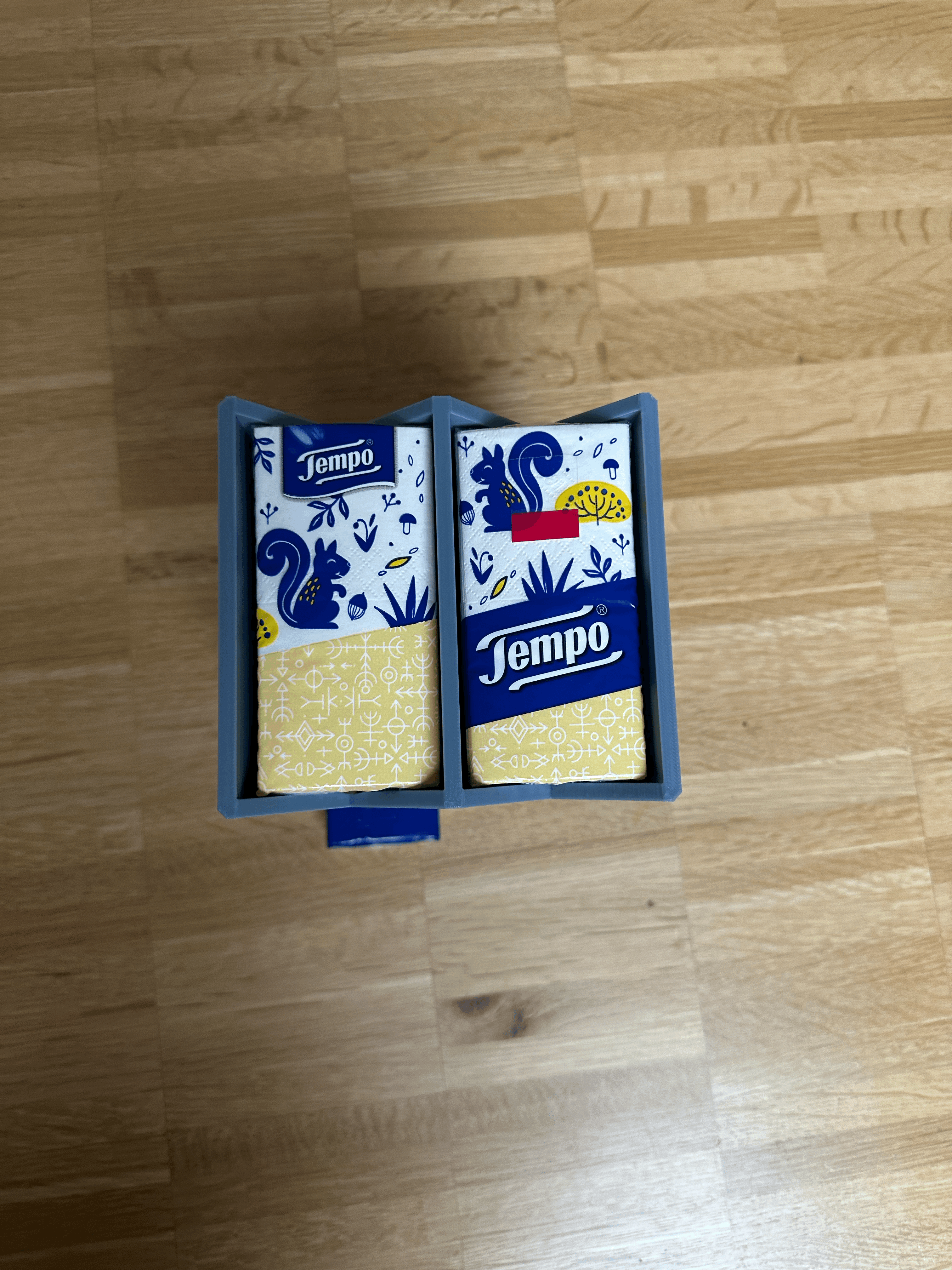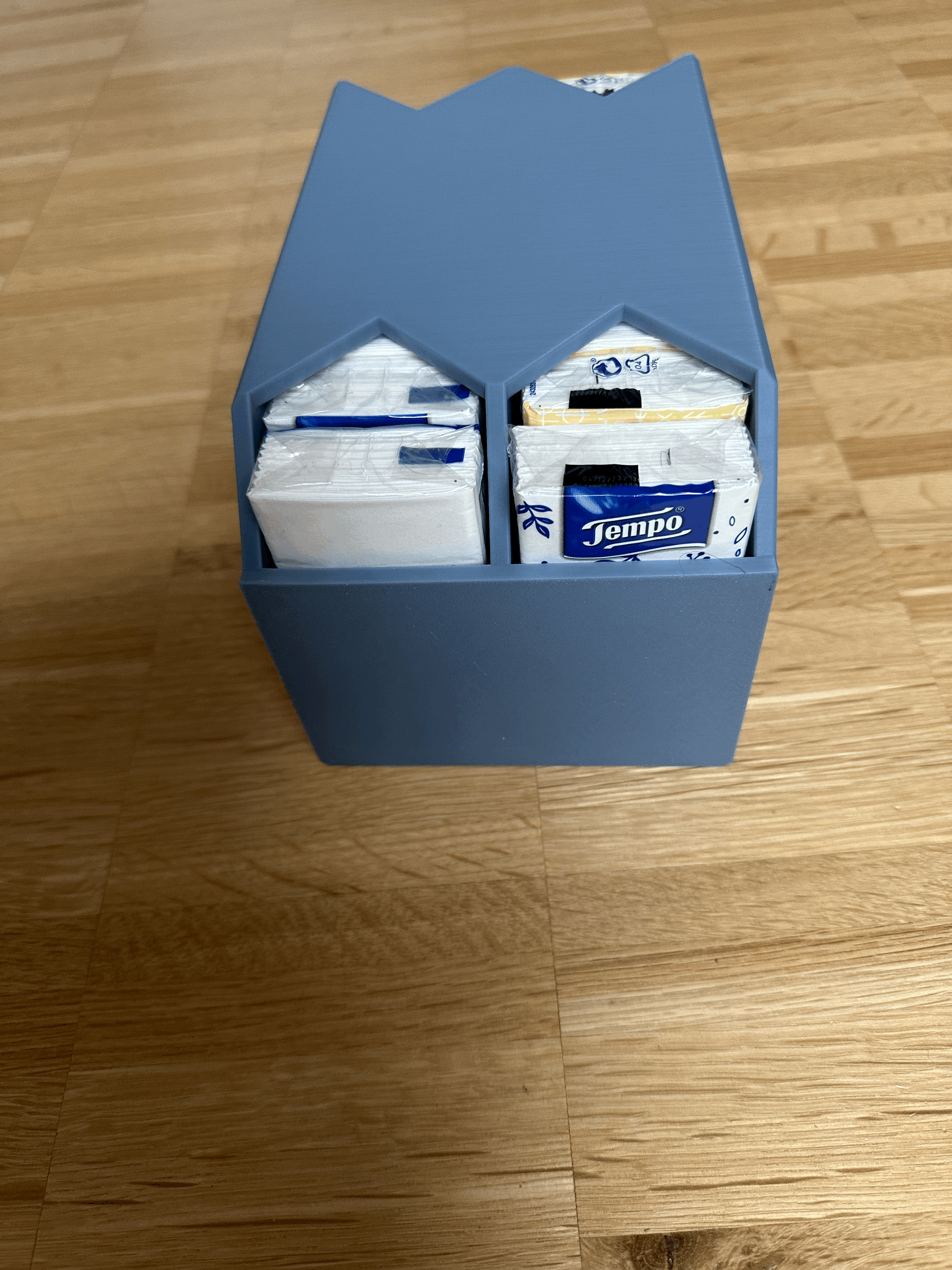 Hộp đựng khăn giấy xài được cho khăn giấy Tempo kích cỡ khoảng 5,5cm x 11cm. Có hai phiên bản: một để bàn không có lỗ gắn, và một phiên bản có lỗ gắn 3mm. Kích thước hộp là 120x129x210mm (Dài x Rộng x Cao). Phù hợp cho người dùng cần sự tiện lợi và thẩm mỹ cho không gian sống và làm việc.