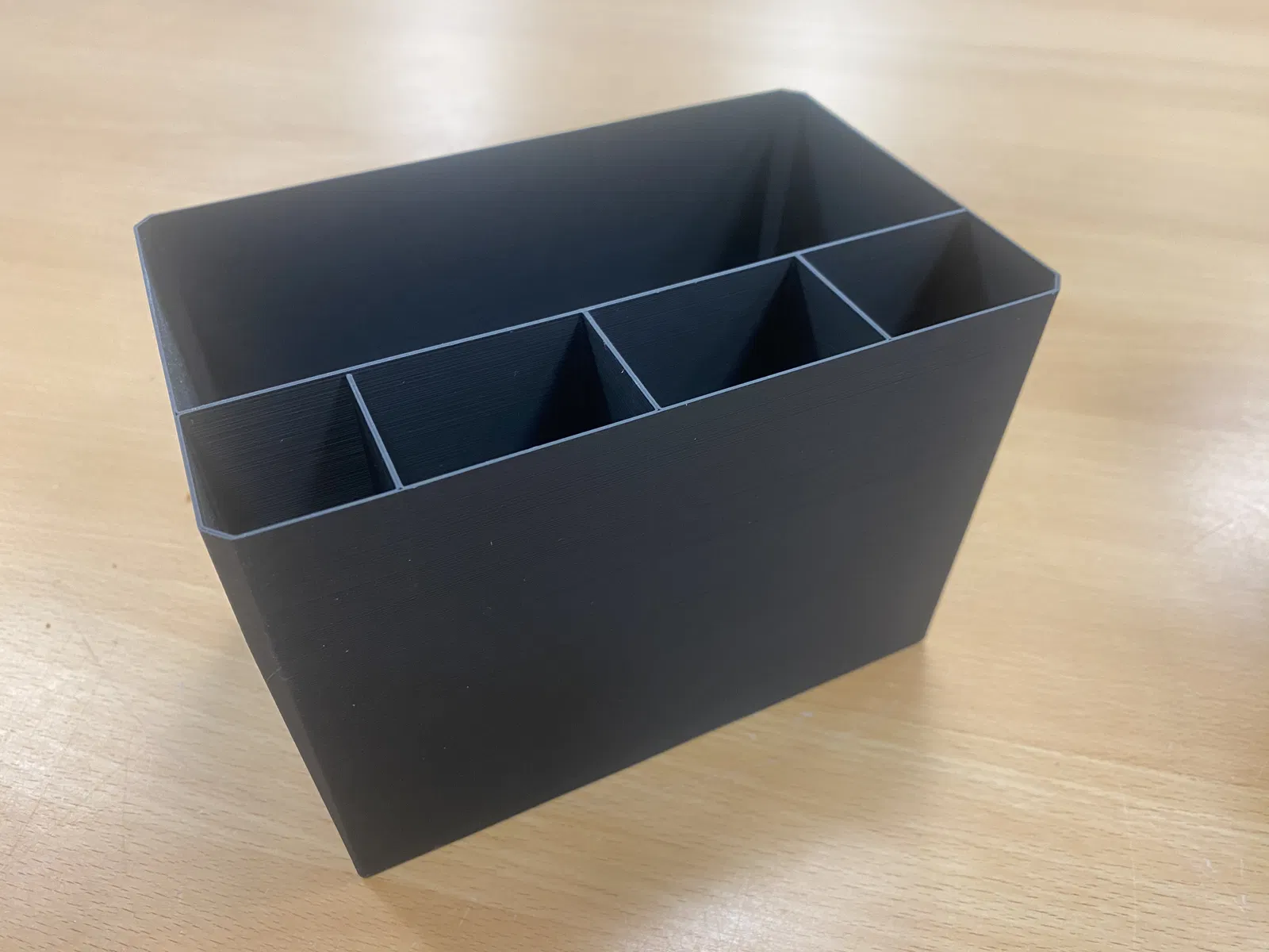 Tôi dùng nó bên trong một hộp lớn hơn (không in 3D) để đựng đồ, mà tôi kéo ra lúc ăn trưa. Sau bữa trưa thì cất lại vào tủ, để bàn có thể dùng cho các cuộc họp.