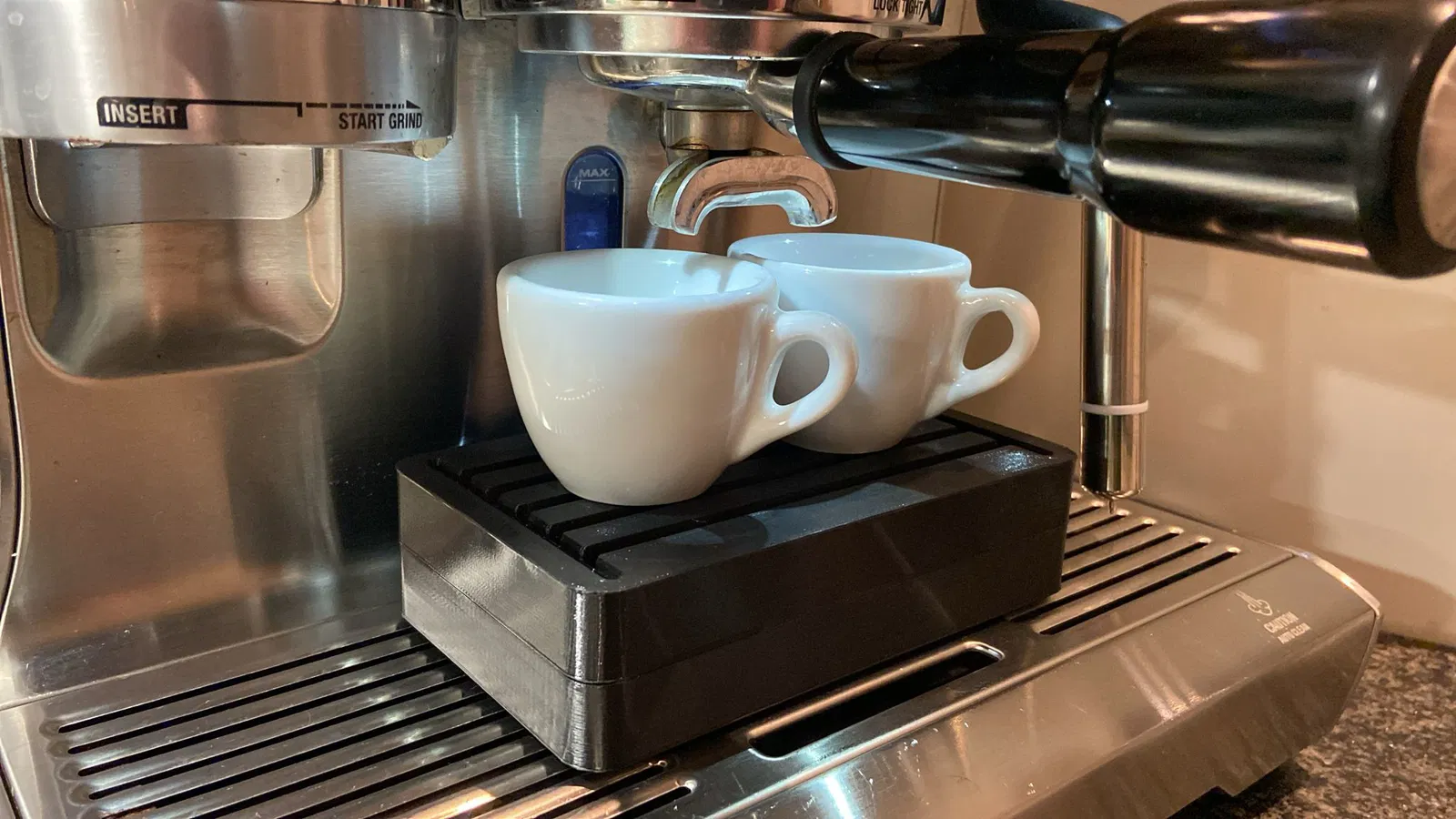 Một khối module có thể xếp chồng lên nhau để nâng (một chiếc) cốc nhỏ lên vòi phun khi pha chế, ví dụ như pha espresso. Khối này được làm từ nhựa PETG, có rãnh và khớp nối vát cạnh để dễ dàng lắp ráp và sử dụng trong máy rửa chén.
