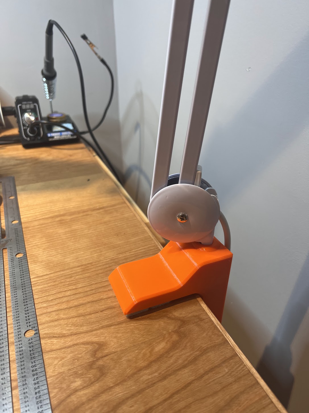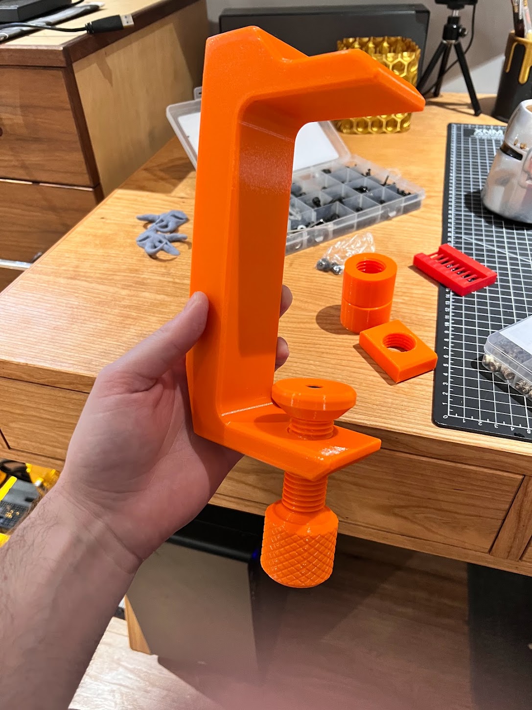 Kẹp bàn đèn học cỡ lớn cho mặt bàn dày hơn. Kẹp này được tui xài hàng ngày cả tháng nay mà nó không nhúc nhích miếng nào hết. Như hình mấy bạn thấy là nó đang chịu lực khá mạnh mà vẫn không bị hư hại.