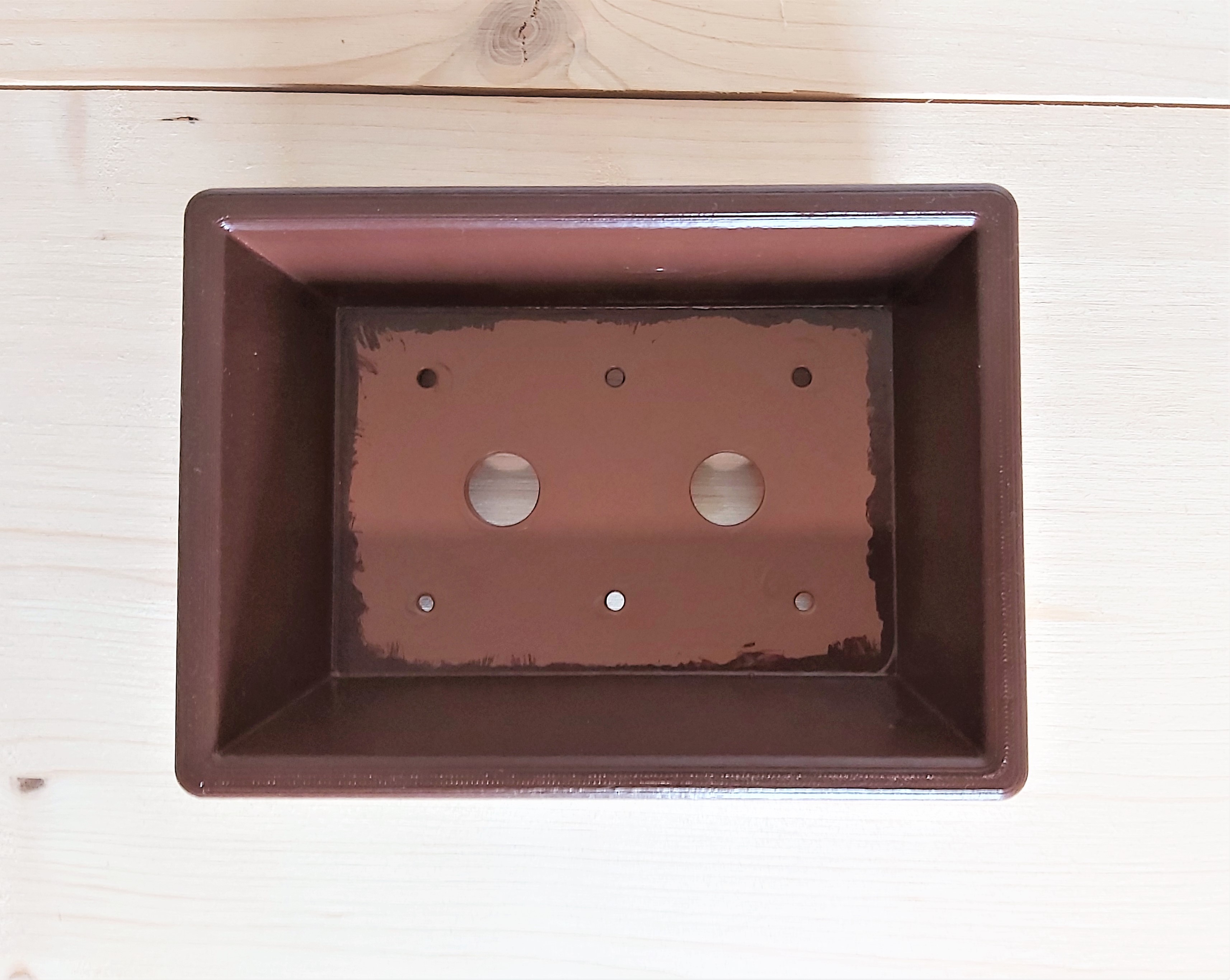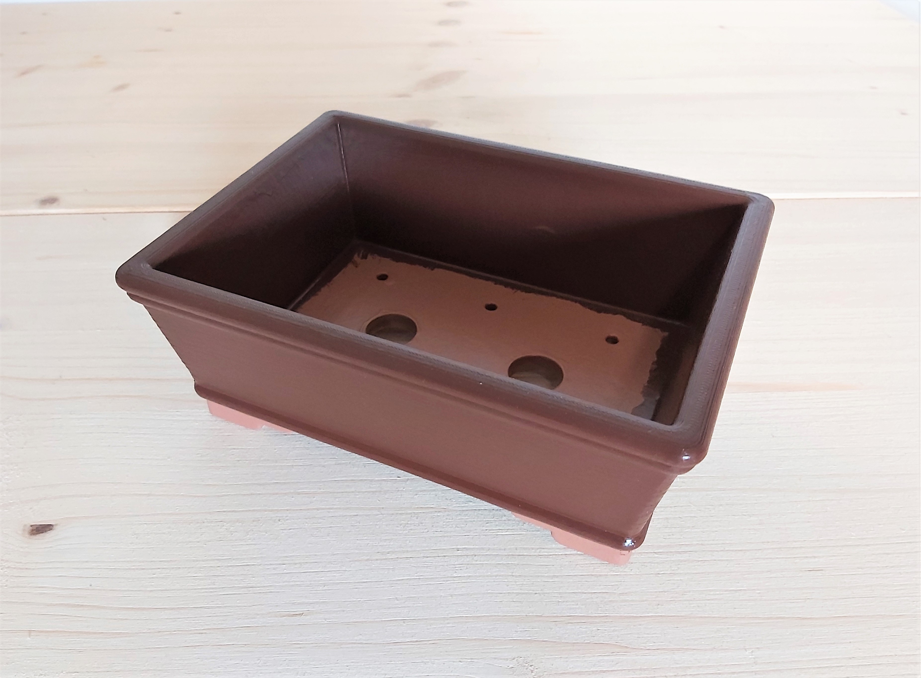 Chậu bonsai 02 hình chữ nhật (shohin), kích thước 185x135x70 mm, bạn có thể dán chân đế vào đáy hoặc in cả mẫu thành một khối.