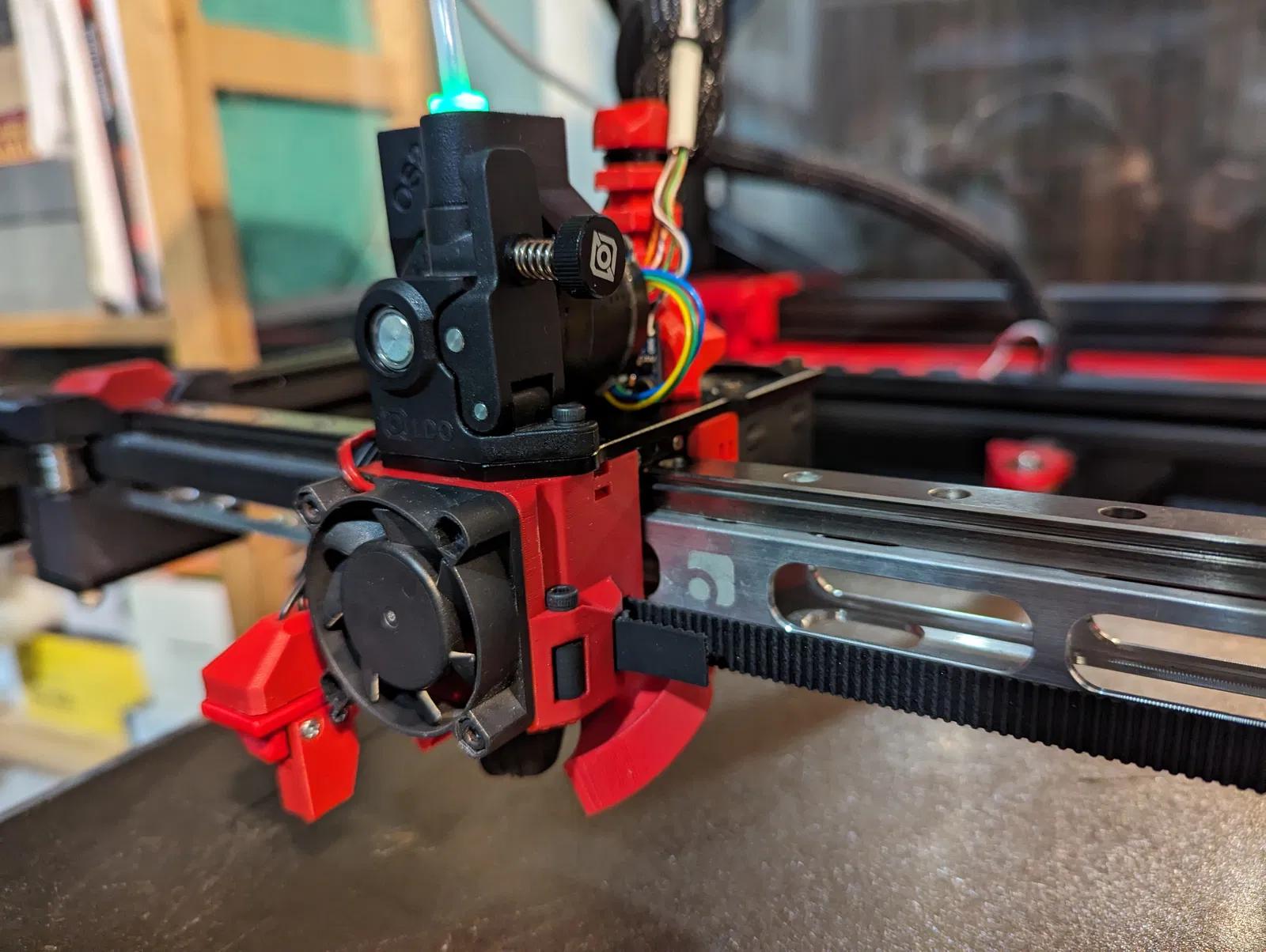 Chỉnh sửa lại bộ phận zin để gắn đầu dò klicky. Chỉnh sửa càng của đầu dò klicky để có vị trí tối ưu nhất. Dùng 2 ốc M3x8 để gắn càng probe với 2 ốc ren M3. Nhớ canh chỉnh lại vị trí dock probe sau khi lắp nha.