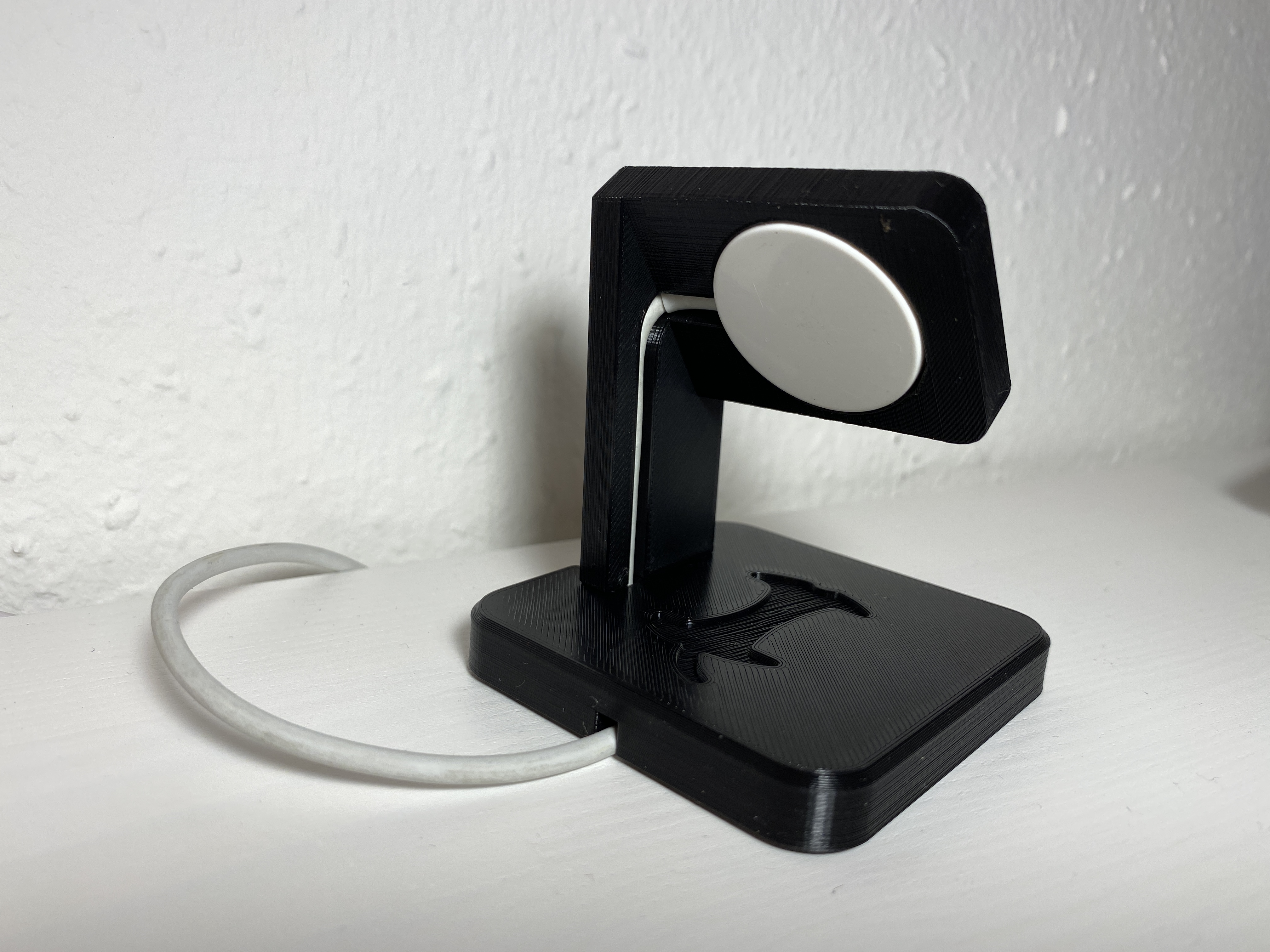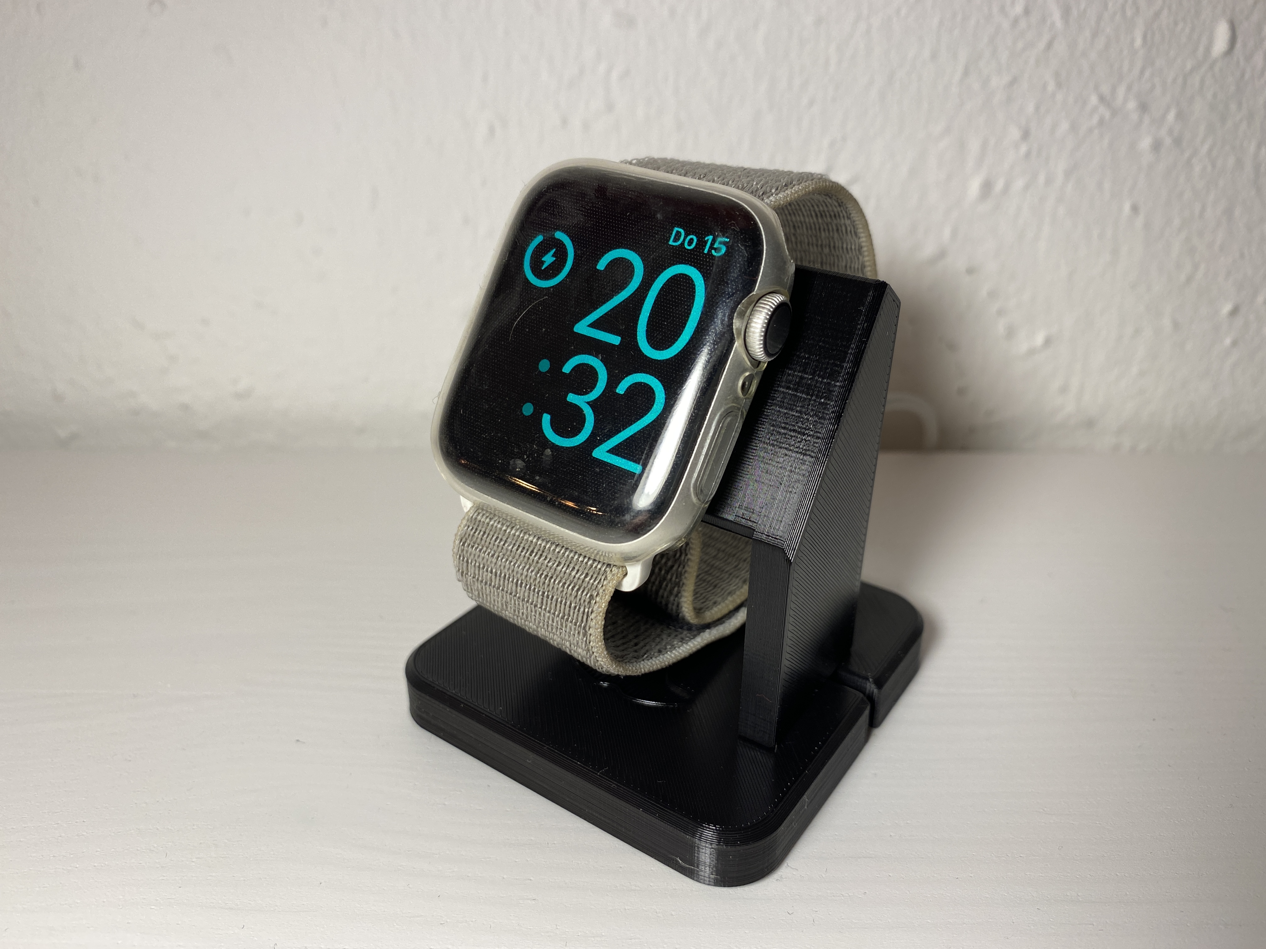 Đây là ý tưởng của mình về một cái giá đỡ cho Apple Watch. Dây cáp có thể giấu gọn trong đế, bạn chỉ cần 2 con ốc M3 x10 và vài miếng cao su chống trượt. Chúc các bạn in vui vẻ!