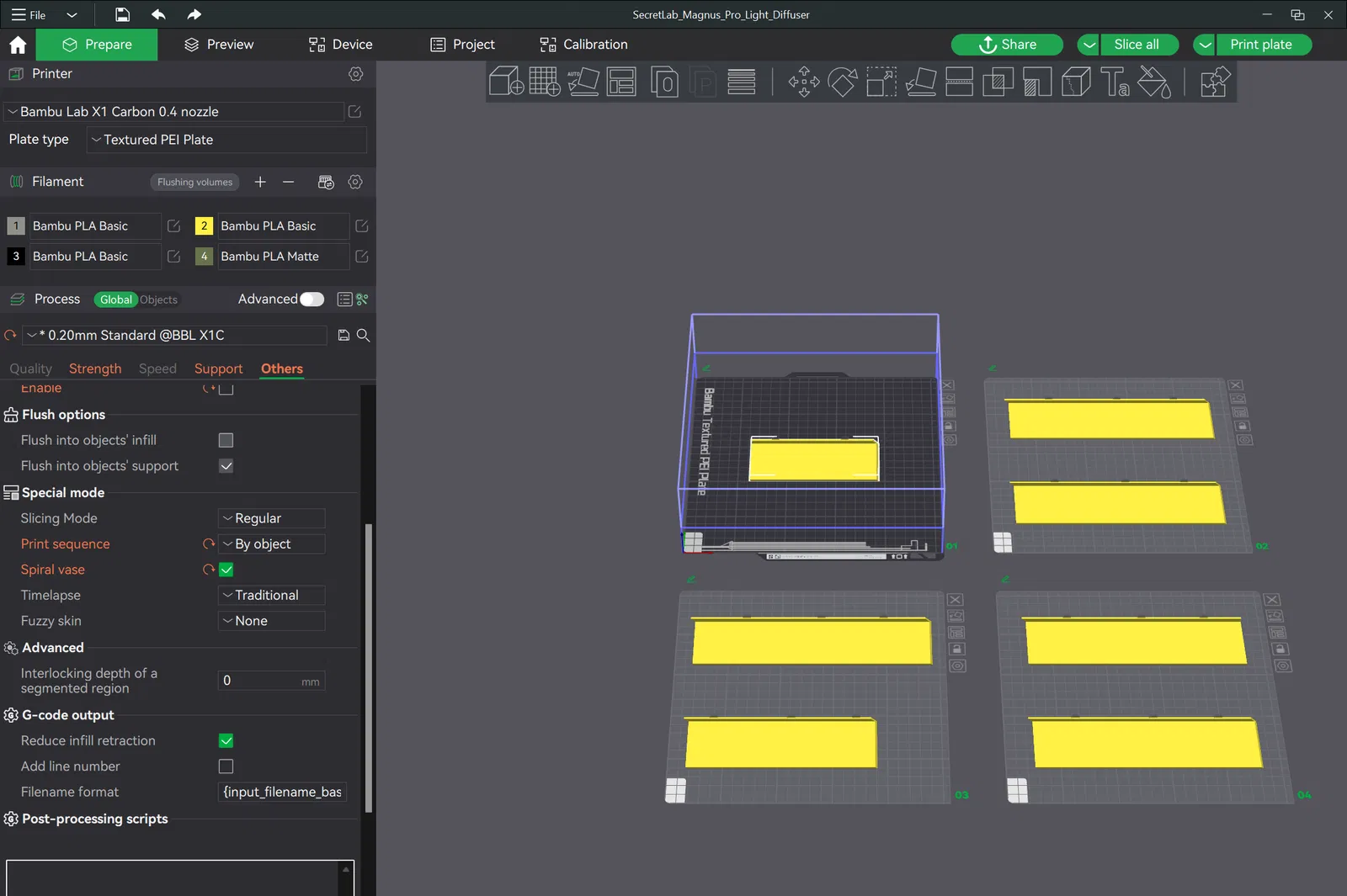 Mẫu in này dành cho Secretlab Magnus Pro, vừa che khay cáp vừa khuếch tán ánh sáng. Thiết lập in: .2mm layer height, 1 wall, 0% infill, Spiral Vase, Print By Object. Dùng hướng file STL/3mf gốc nha.