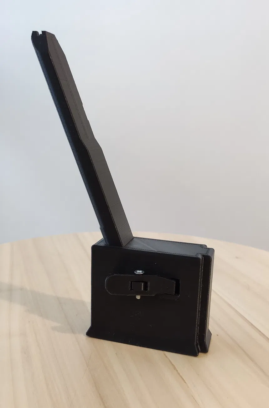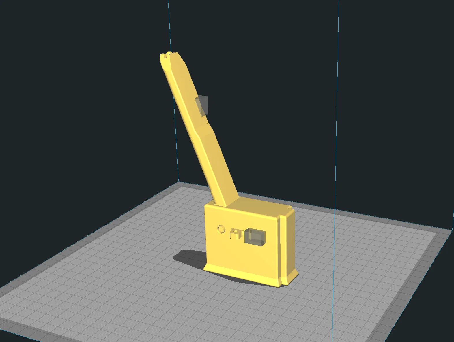 Nó cao 176mm, nên vừa với mọi máy in 20cm trở lên. Mình có thêm bộ chặn support ở 2 lỗ chốt giữ băng đạn để tránh support kỳ cục (xem hình). Phần support bên trong đáy là một cục lớn nhưng khá dễ rơi ra (tùy thuộc vào chất lượng filament của bạn). Nếu cần