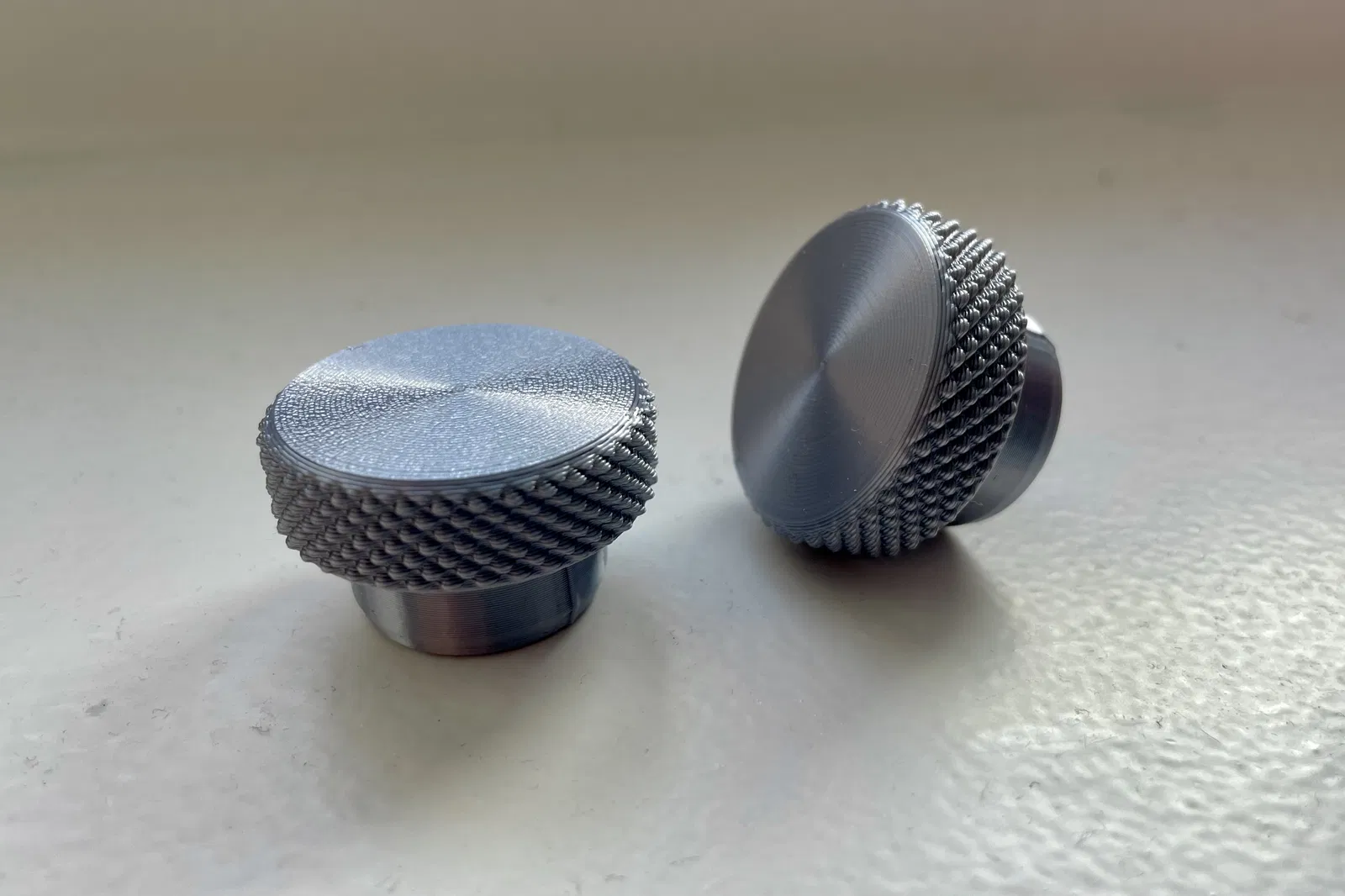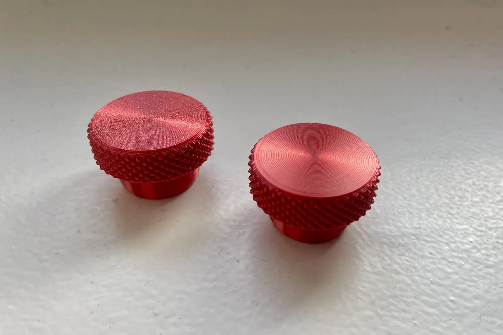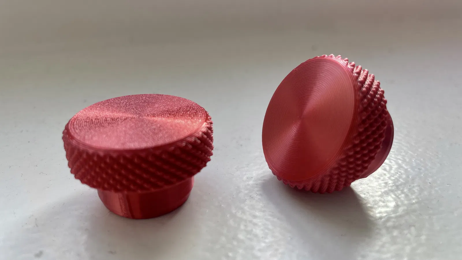 Lời khuyên cho người thích hoàn hảo: Bạn có thể đạt được vẻ ngoài như kim loại tiện bằng Silk PLA, kiểu tô đáy 'Archimedean Arches', và lớp đầu tiên chồng lên 100% ở viền trên khay in nhám.