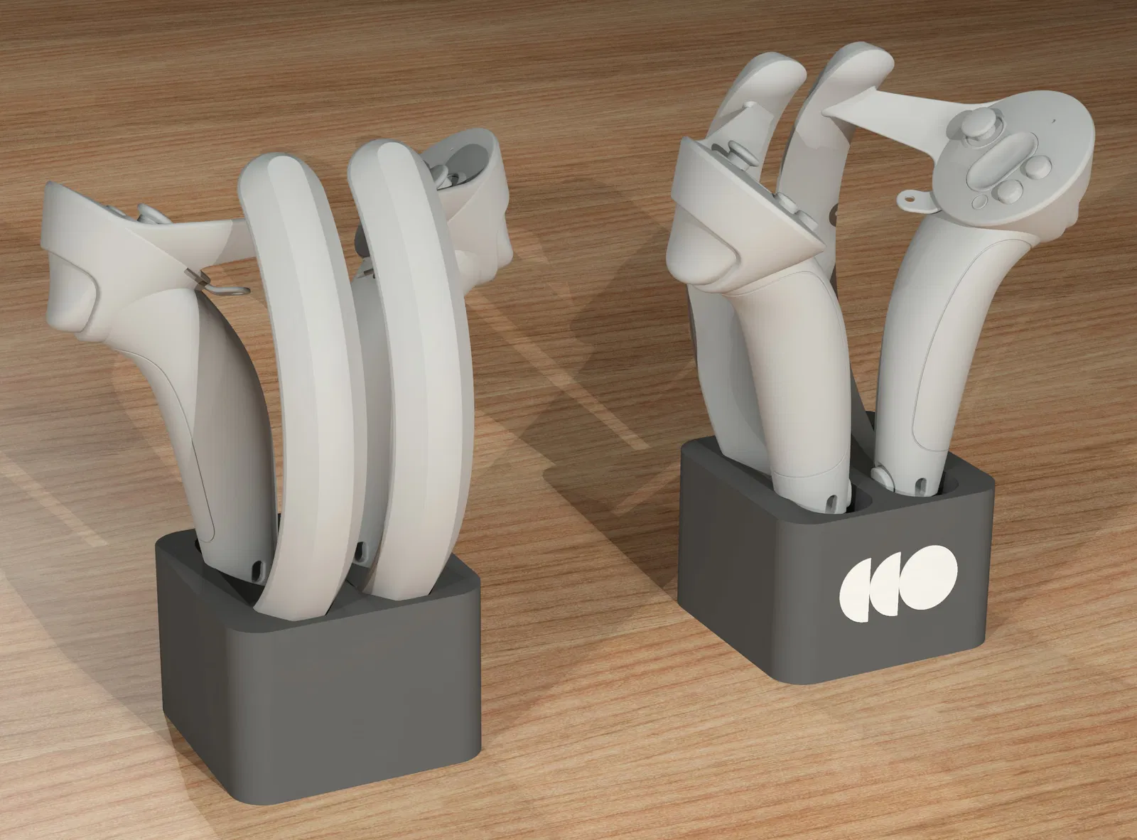 Đế đơn giản, tối giản để lưu trữ và sạc Tay cầm Valve Index. Đế có kích thước 3.625"W x 3.625"D x 2.5"H. Hướng dẫn chi tiết cách lắp cáp sạc và các tùy chọn tùy chỉnh.