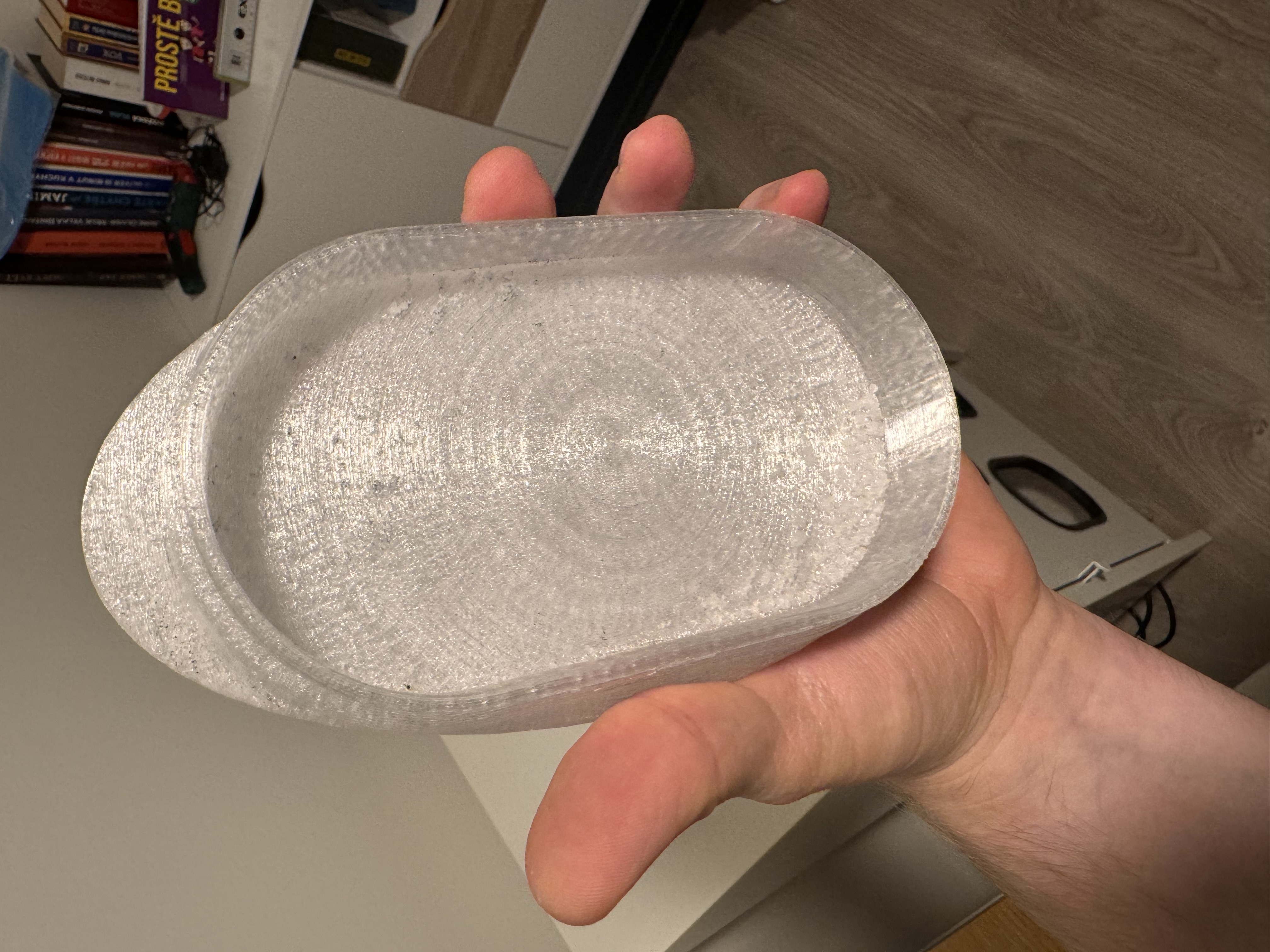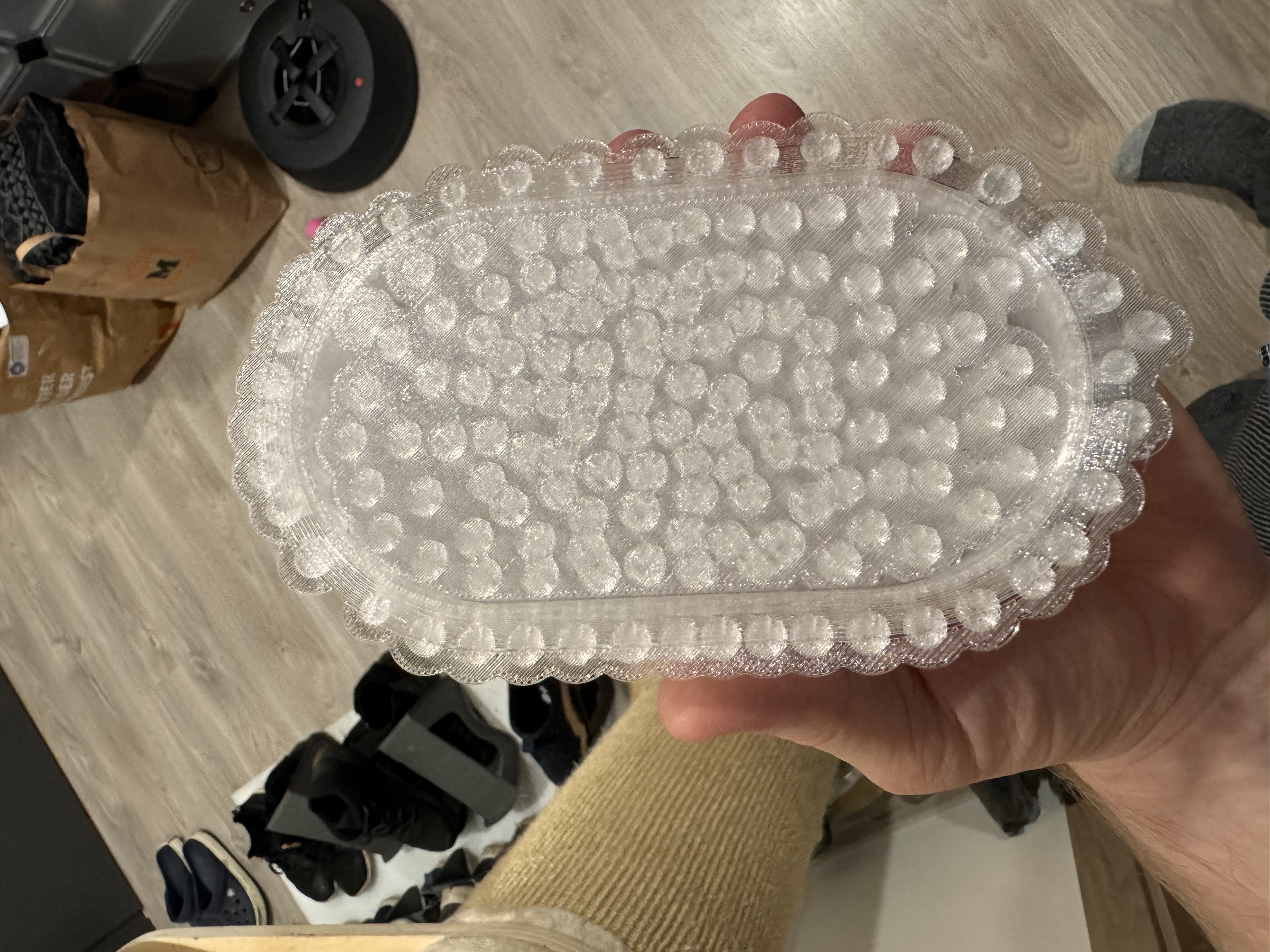 Tôi đã tạo hai phiên bản trang trí cho khay đựng xà phòng, bao gồm phiên bản hình elip và hình tròn.
