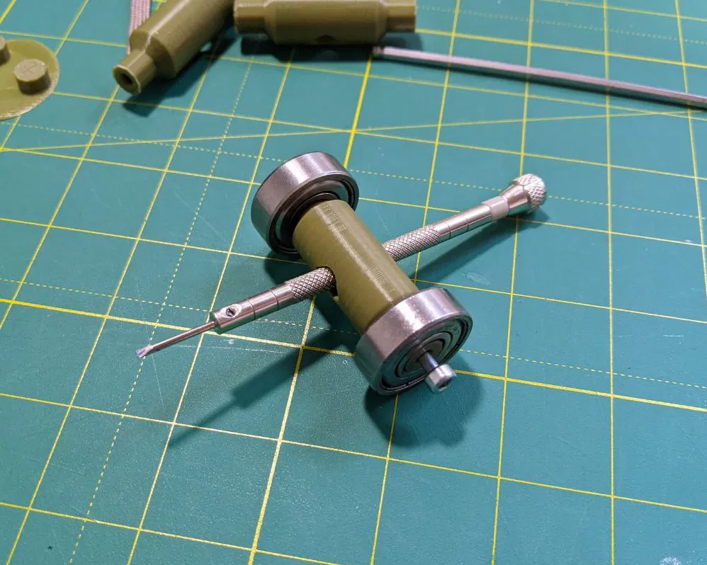 Chán vì không tìm được khuôn mài tua vít để in 3D, tui tự chế cái này để mài và tạo hình lại tua vít đồng hồ dễ dàng. Khuôn này dùng được cho tua vít tới 6mm, xài bạc đạn 608.