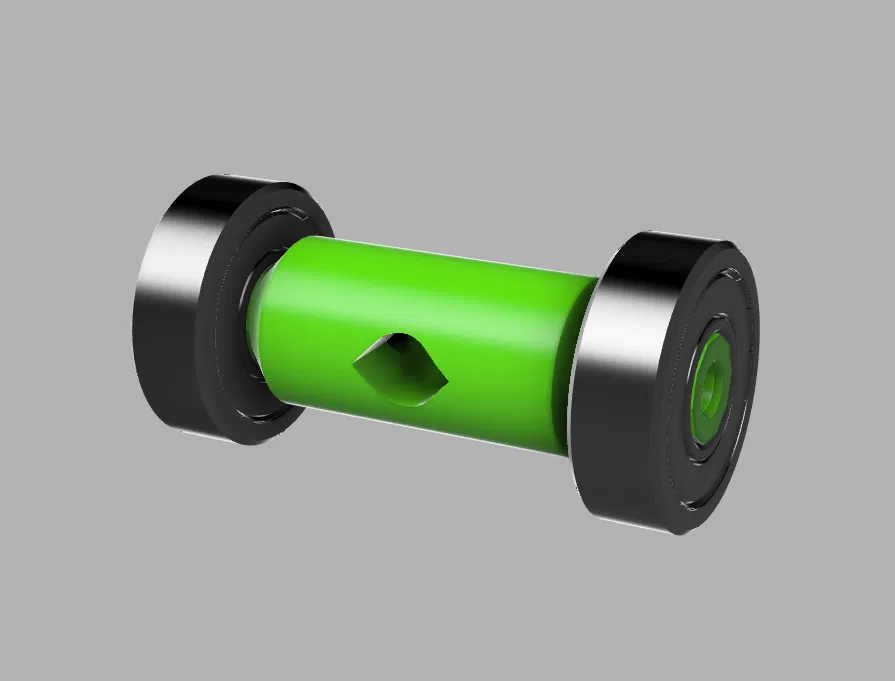 Sử dụng bạc đạn 608 nha (loại bạc đạn thông dụng cho skateboard hoặc fidget spinner đó) Trục hình đa giác giúp gắn bạc đạn dễ hơn
