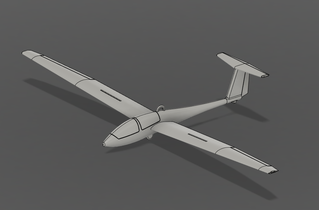 Mô hình trang trí tàu lượn đôi 2 chỗ ngồi, tỉ lệ 1:100. Tàu lượn in 2 mảnh, không cần support. Có lỗ để gắn dây tóc giữ form khi lắp ráp. Cài đặt in mặc định 0.1mm, 25% support.