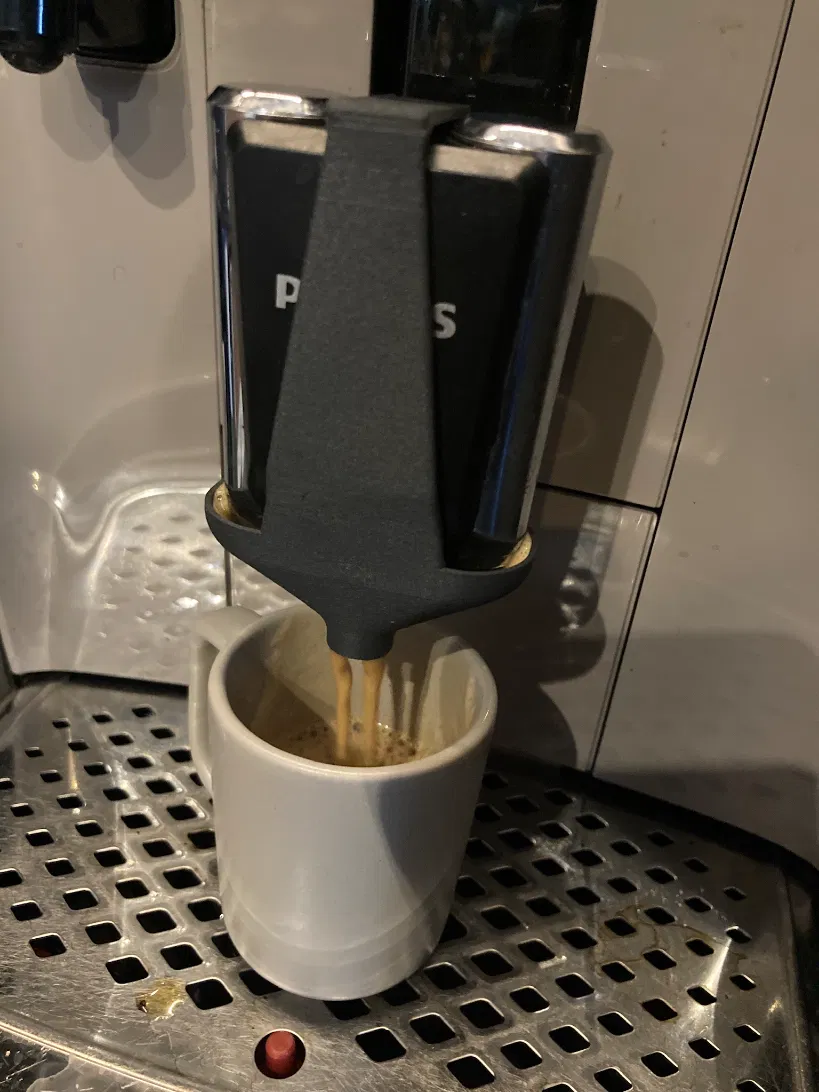 Ống nối đơn cho vừa cốc espresso nhỏ. Chuyển đổi vòi đôi thành vòi đơn, dễ dàng gắn vào máy Philips, in bằng PETG hoặc sợi chịu nhiệt, hỗ trợ file BambuLab X1C.