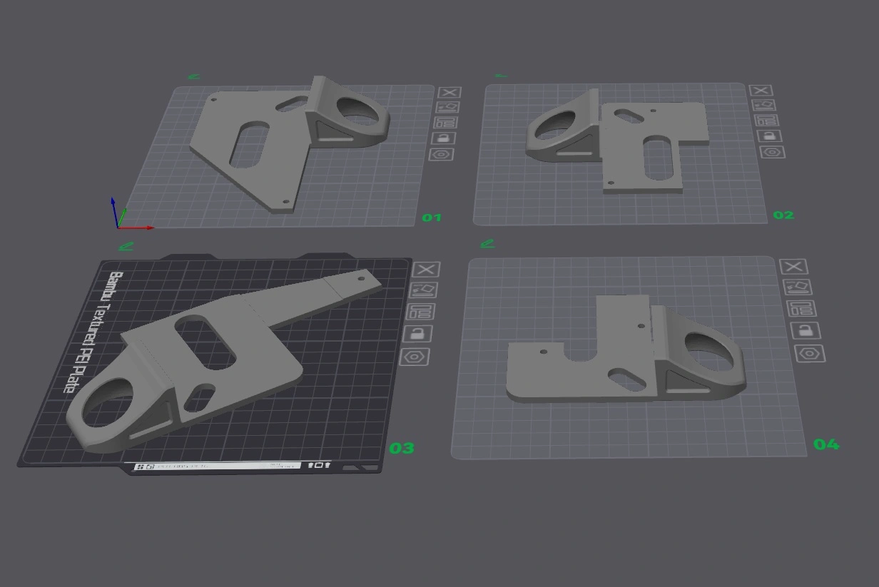 Tăng độ ổn định cho A1 Mini với bộ chân đế kiểu càng cua lấy cảm hứng từ bóng squash. Lắp đặt có thể hơi khó khăn nhưng sẽ mang lại sự vững chắc hơn cho máy in của bạn. Nhớ chuẩn bị ốc m3 dài hơn khi lắp đặt nhé.