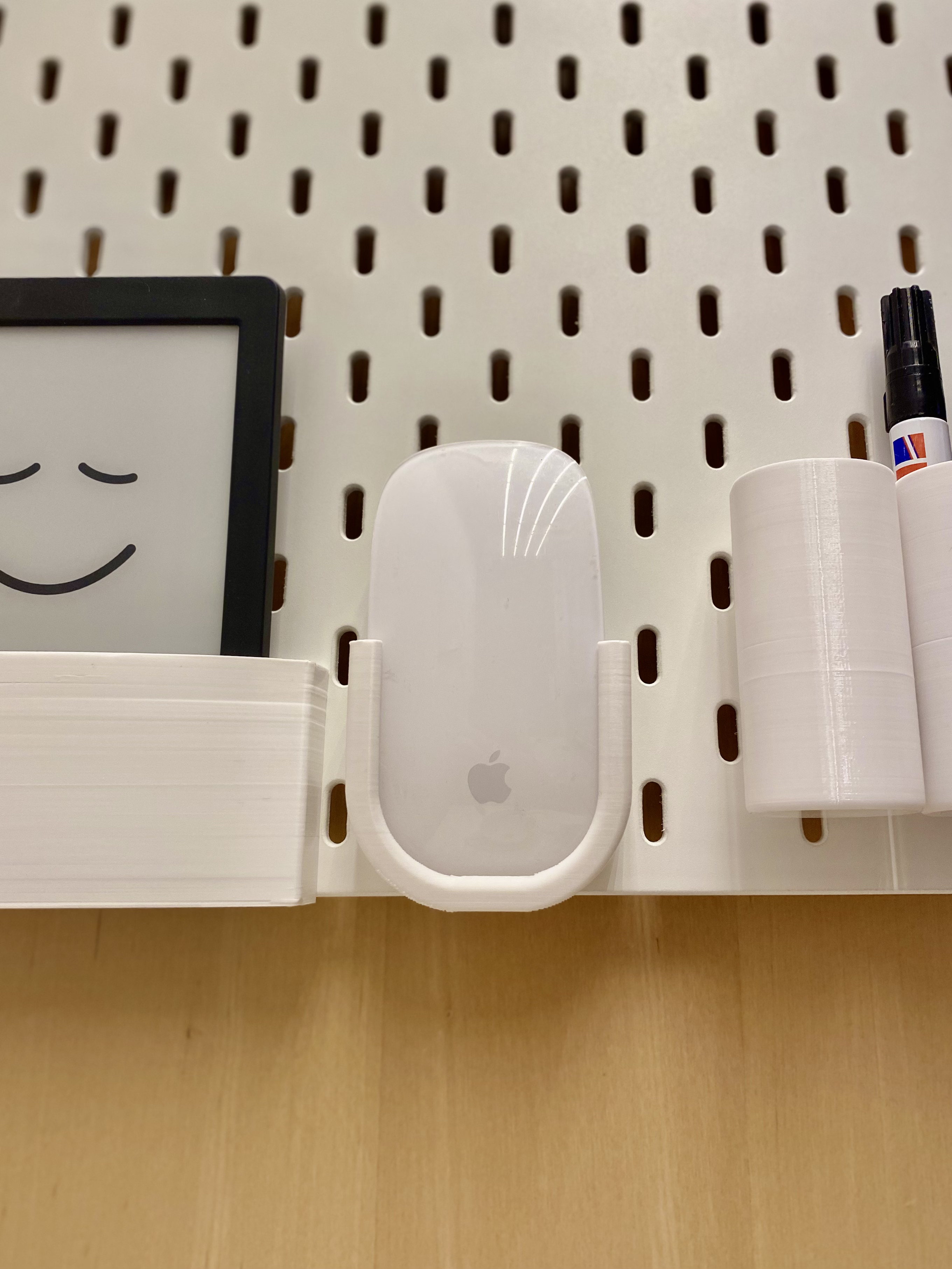 Tìm ngay giá đỡ Magic Mouse dành riêng cho bảng peg IKEA Skadis. Dễ dàng in ấn, chỉ cần cài đặt tiêu chuẩn của bạn. Hoàn hảo để sắp xếp không gian làm việc với Apple Magic Mouse.