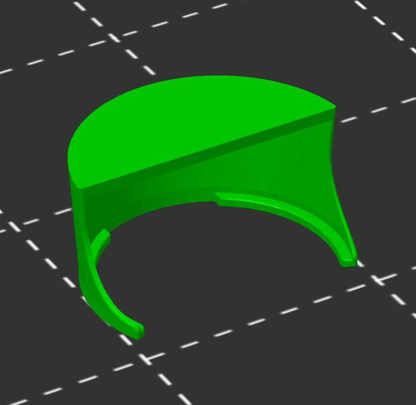 Cái chao đèn này cho phép bạn sử dụng Sofirn Q8 Plus như một đèn pha cho xe đạp hoặc các ứng dụng tương tự. Nó đơn giản là chặn một phần của cạnh chùm sáng tỏa và tạo ra một cạnh cắt rõ ràng để tránh làm chói mắt người đi bộ hoặc phương tiện giao thông đang tới. Gắn ngay vào hàng tản nhiệt phía trên của Q8 Plus. Tôi khuyên bạn nên in bằng sợi nhựa chịu nhiệt cao như PETG, và cũng nên dán một miếng băng keo bạc vào bên trong cạnh phẳng để ánh sáng phản xạ ngược lại và giảm thiểu nguy cơ làm chảy phần nhựa đó. Sử dụng chế độ turbo tùy thuộc vào rủi ro của bạn vì nhựa rõ ràng không phải là lựa chọn lý tưởng cho ứng dụng này. Cần có giá đỡ (khuyến nghị loại Organic).