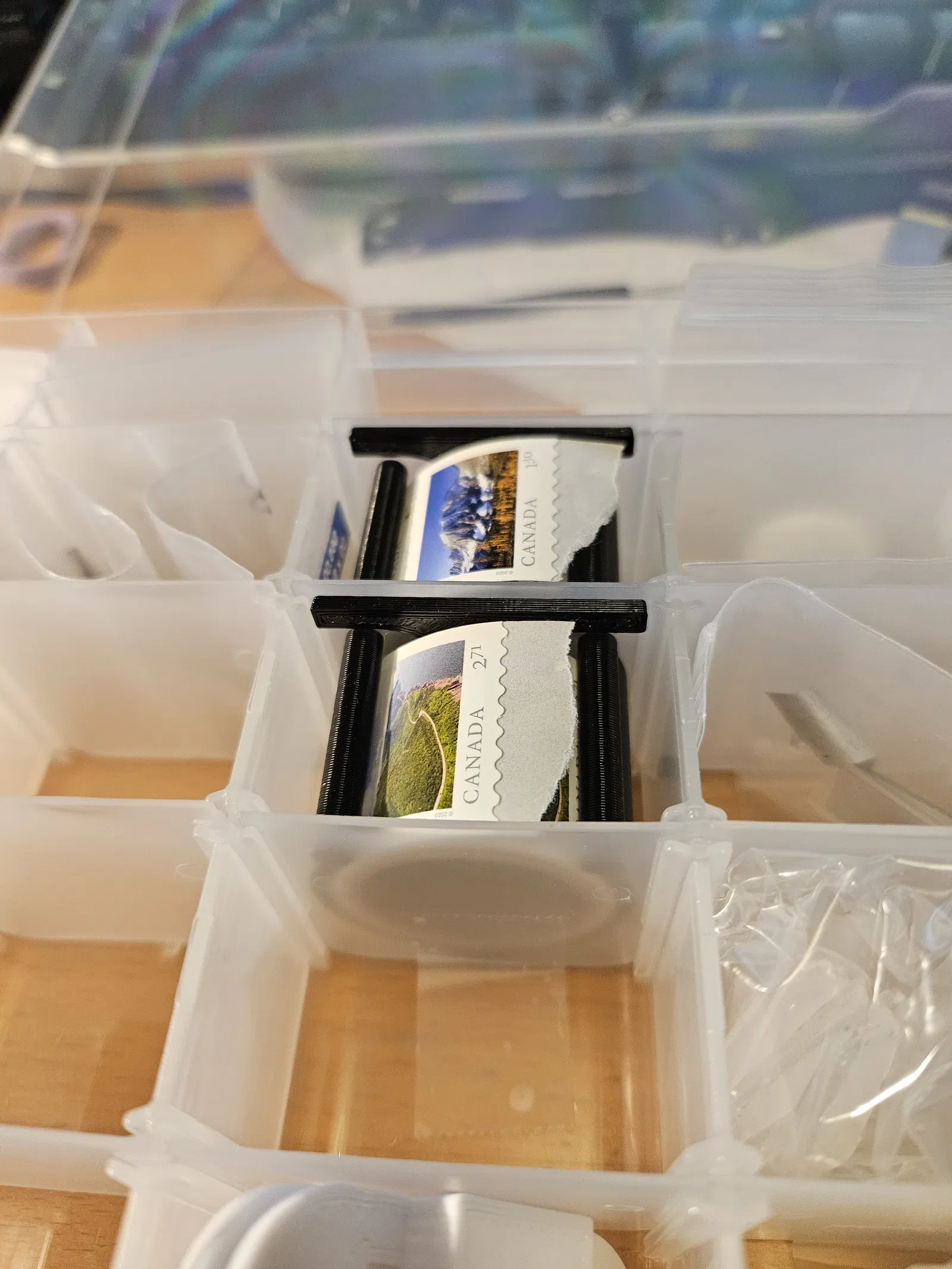 Dùng lò xo PETG siêu xịn để chặn các cuộn tem của bạn không bị lăn và bung ra nhé. Giải pháp lưu trữ gọn gàng cho bộ sưu tập tem của bạn.