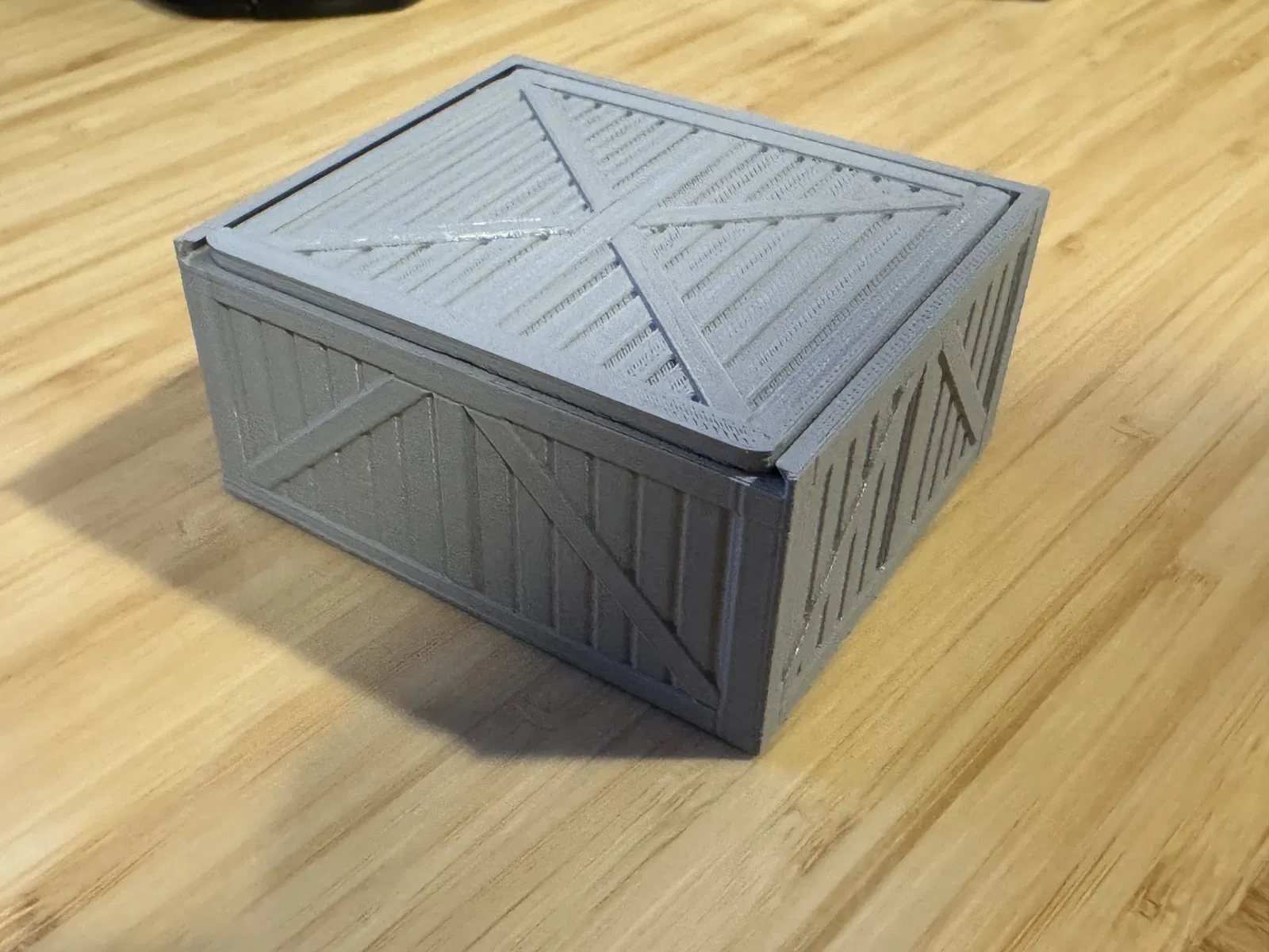 Tui thiết kế cái hộp này để đựng mấy món linh tinh của board game, tui copy cái kiểu dáng của hộp này nè Quacks boxes. Ở cái mẫu mới này, tui xài OpenSCAD để dễ dàng tùy chỉnh kích thước, với lại làm cho cái rãnh nắp dễ in hơn. Mẫu này in không cần support nha.