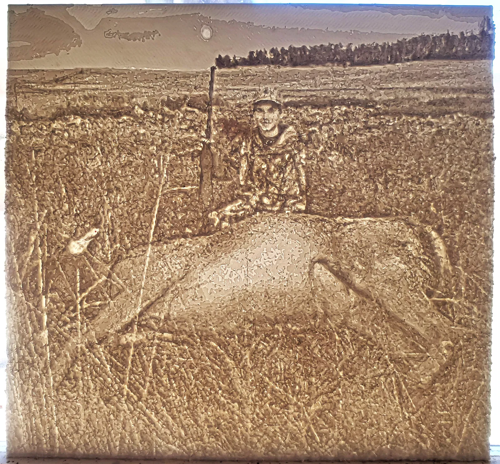 Tấm lithophane này là kỷ niệm tôi và con nai sừng tấm săn được vào năm 2022. Mô hình in ra có thể hơi mờ, nhưng có thể chỉnh sửa bằng máy sấy nhiệt.