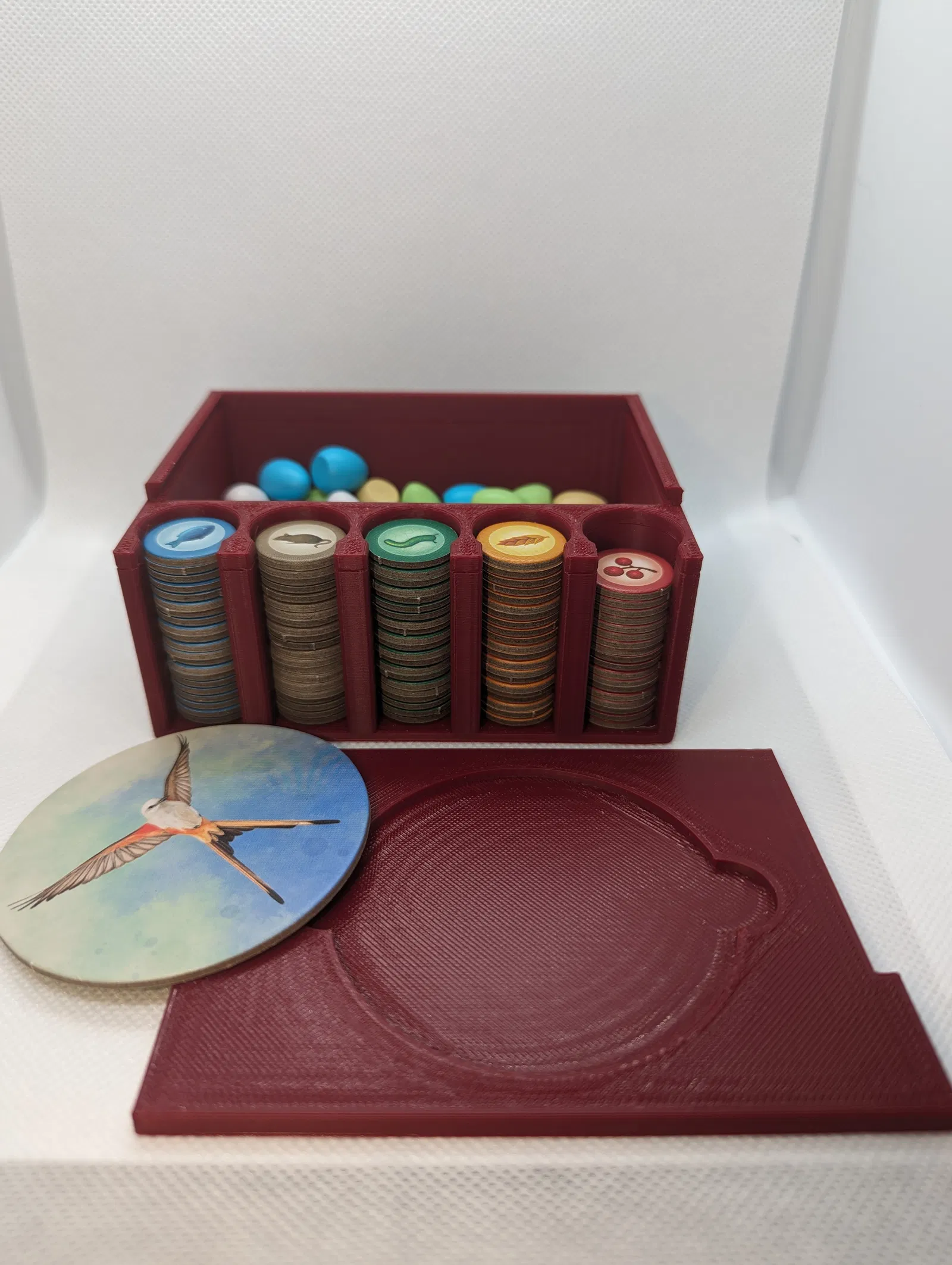 Giảm thời gian chuẩn bị, tối đa hóa thời gian chơi và đơn giản hóa việc lưu trữ với chiếc hộp đựng trứng & thức ăn có nắp trượt này dành cho game Wingspan bản gốc. Hộp có thể giữ token người chơi đầu tiên để lưu trữ và đặt vừa vặn, an toàn trong hộp game gốc cùng các bộ phận đi kèm.