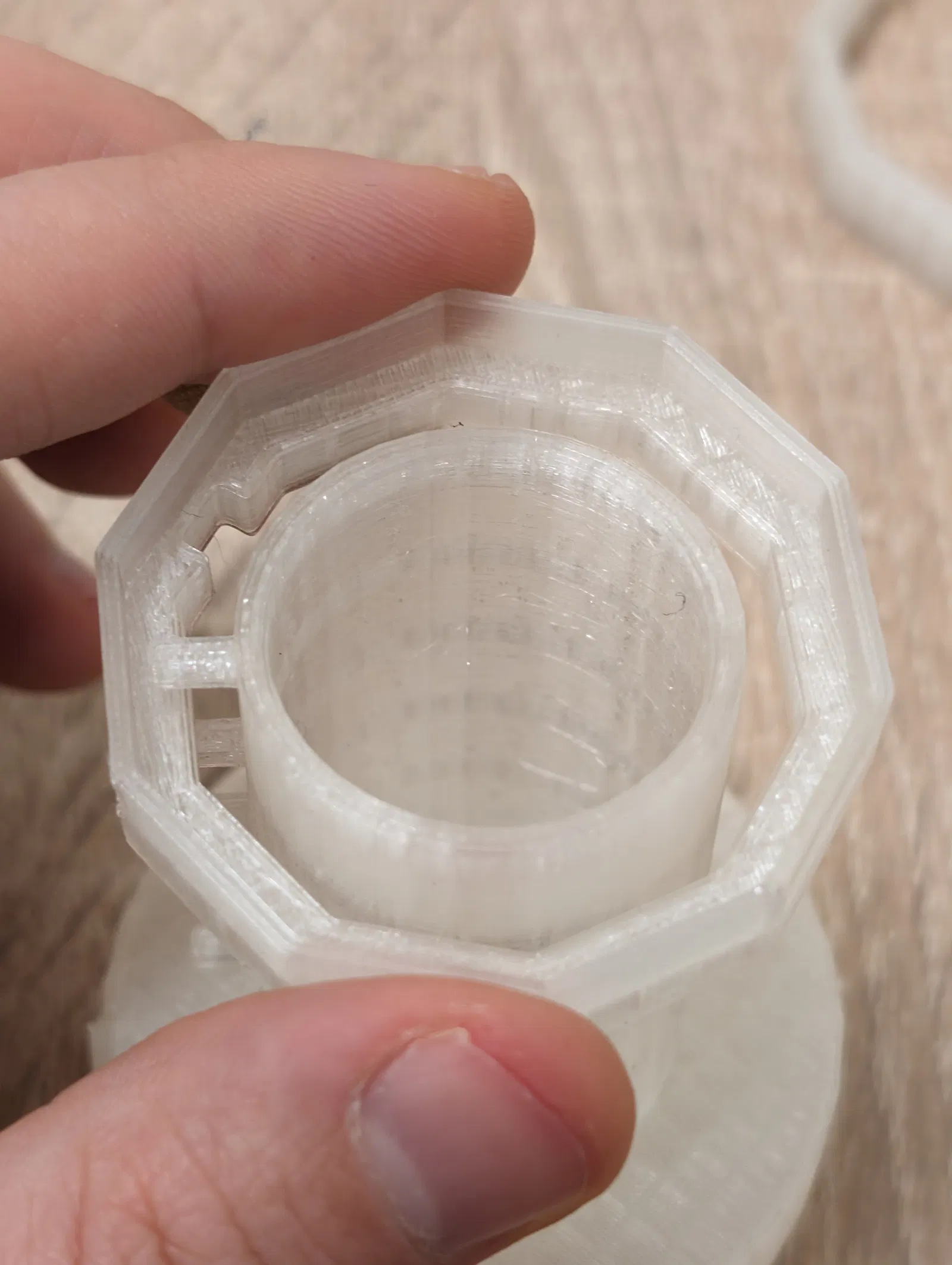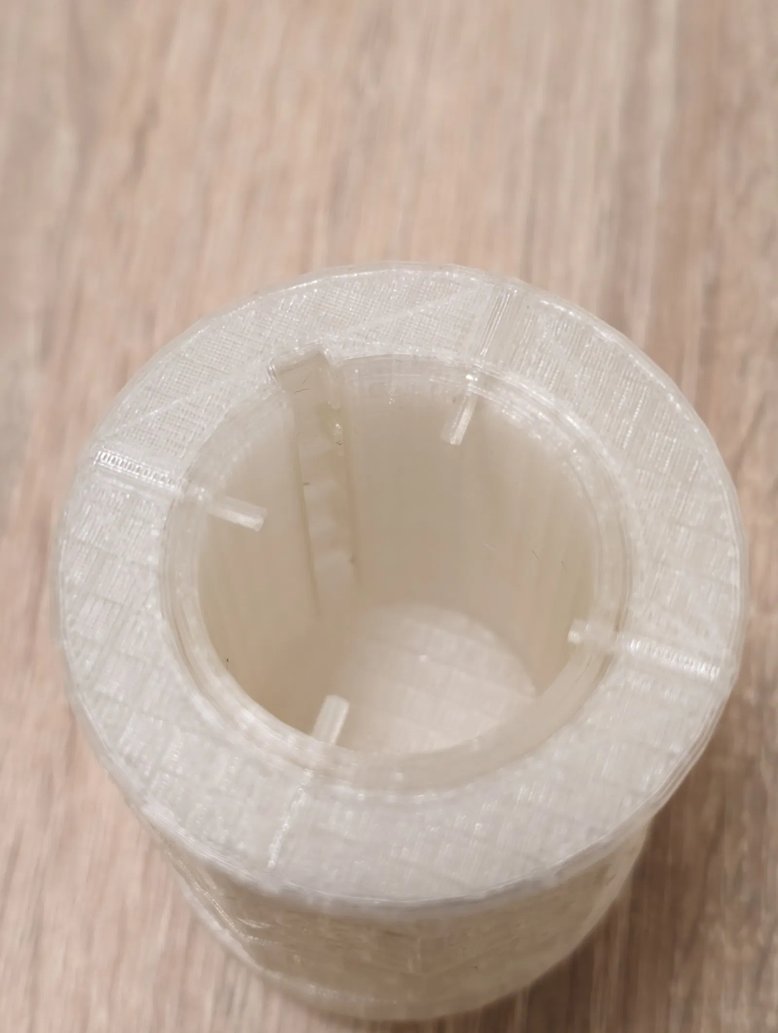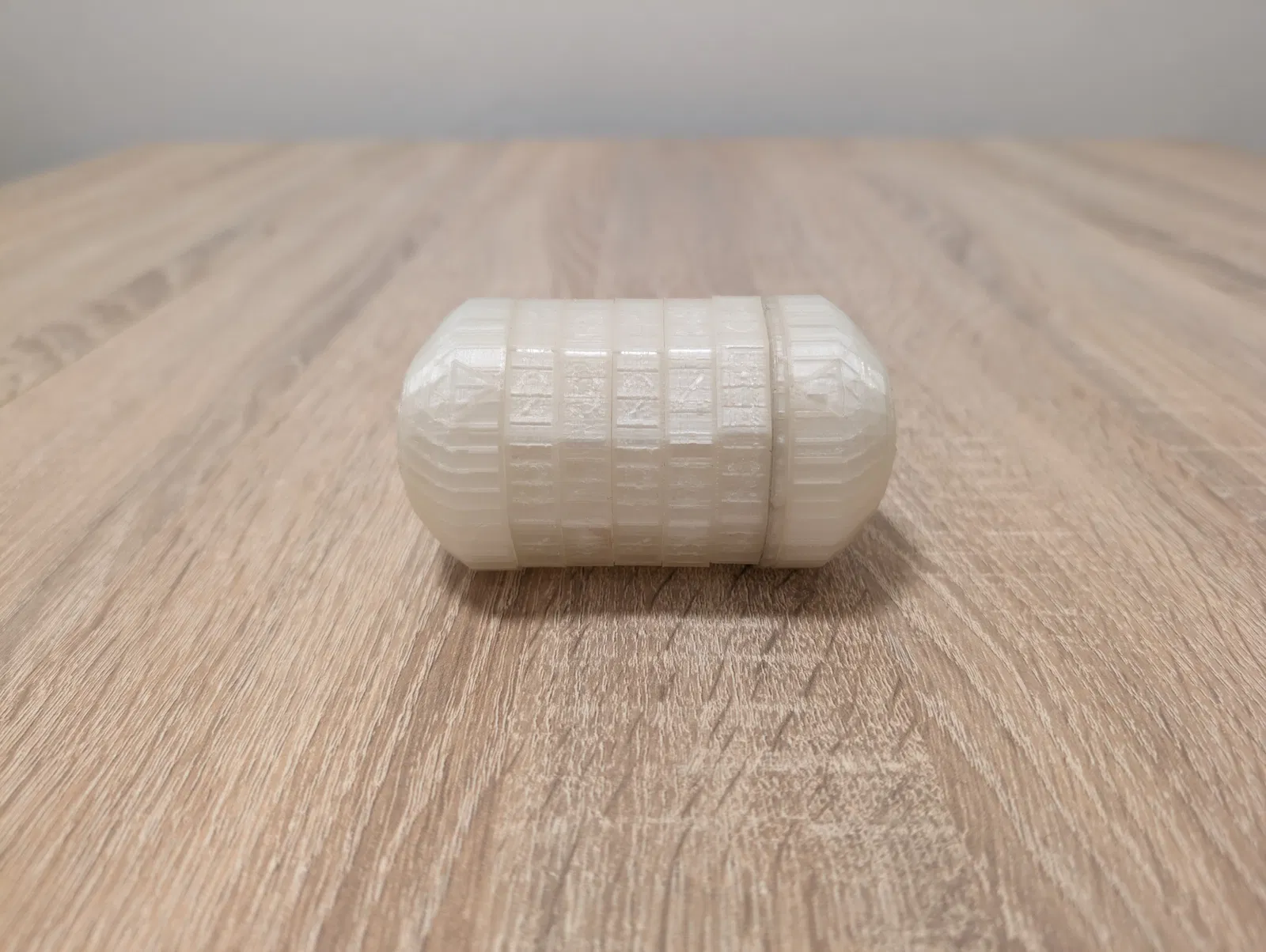 Khóa Cryptex với mã 5 số, cho phép bạn thay đổi mật mã dễ dàng. Cơ chế khóa bánh xe độc đáo, lấy cảm hứng từ Cryptex gỗ, được tạo ra bằng OpenSCAD.