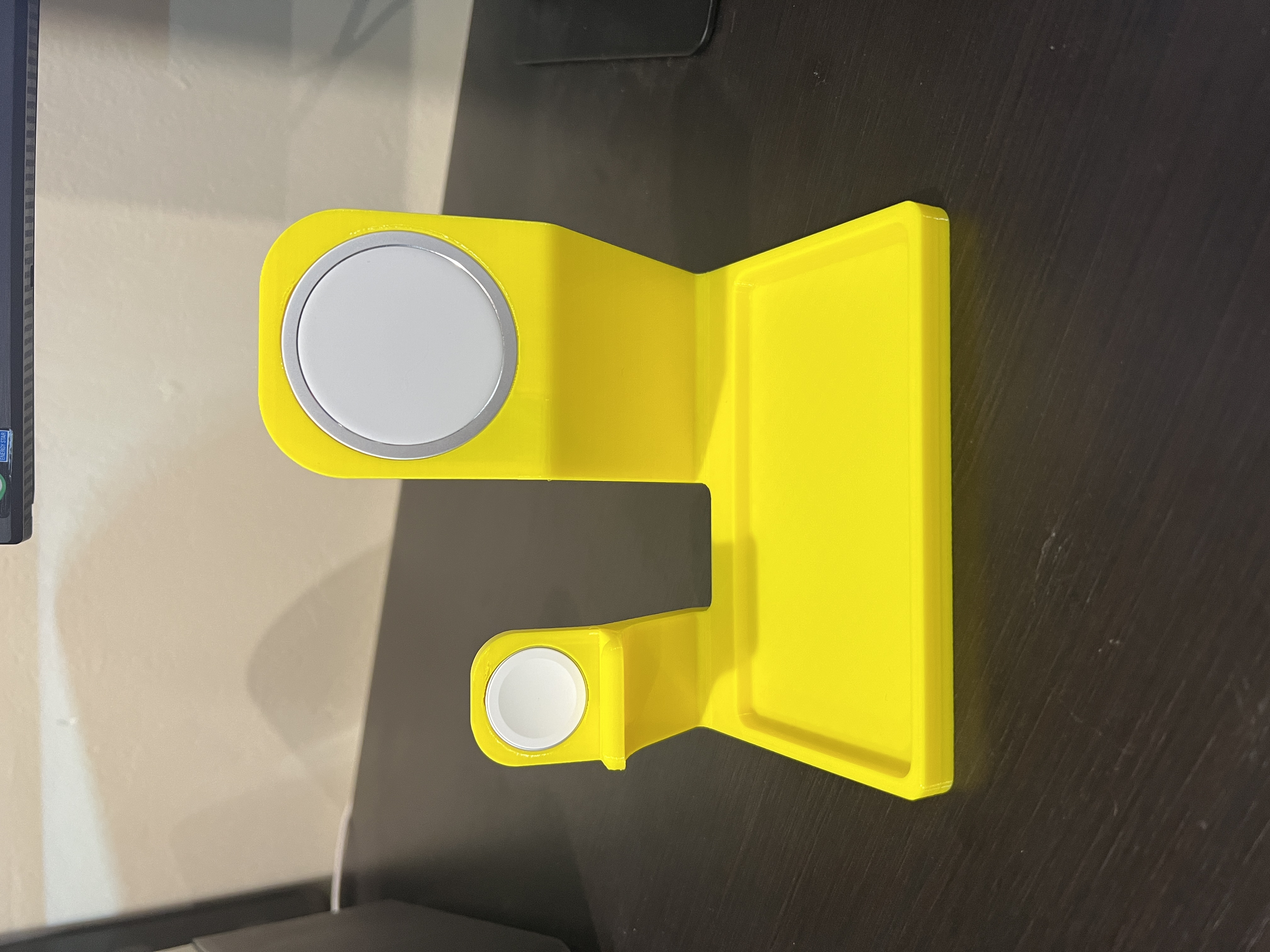 Đây là bản remix giá đỡ sạc không dây MagSafe cho iPhone và Apple Watch, bổ sung khay đựng đồ, bo tròn cạnh trên, thêm kệ cho Apple Watch, cải tiến khe đẩy sạc và rãnh quản lý dây tương lai. Khuyến nghị cài đặt góc bridging 45 độ để có kết quả in tốt nhất.