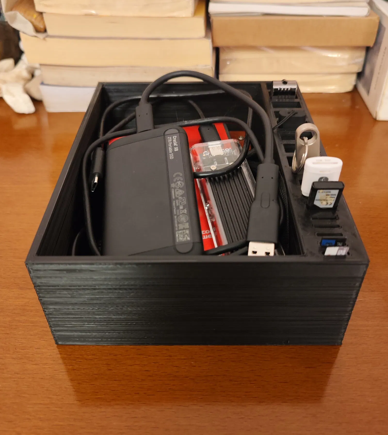 Khay đựng cho tất cả USB, Micro SD, SD, HDD và SSD của bạn.