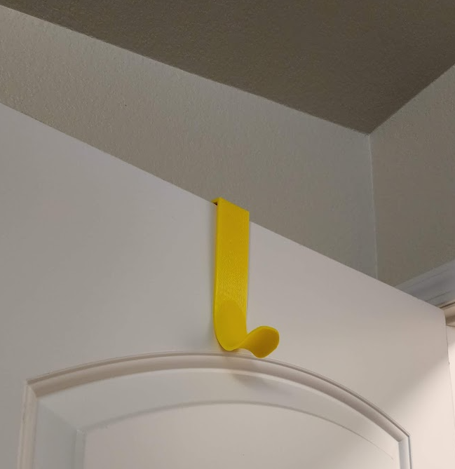 Một móc treo cửa đơn giản nhưng chắc chắn với đường cong lõm để gia cố. In nghiêng sang một bên mà không cần hỗ trợ, với chiều cao lớp và mật độ điền tùy chọn. Đã thử nghiệm giữ 50lbs mà không bị gãy khi in với chiều cao lớp 0.2mm và mật độ điền 20%, với các đường viền mặc định.