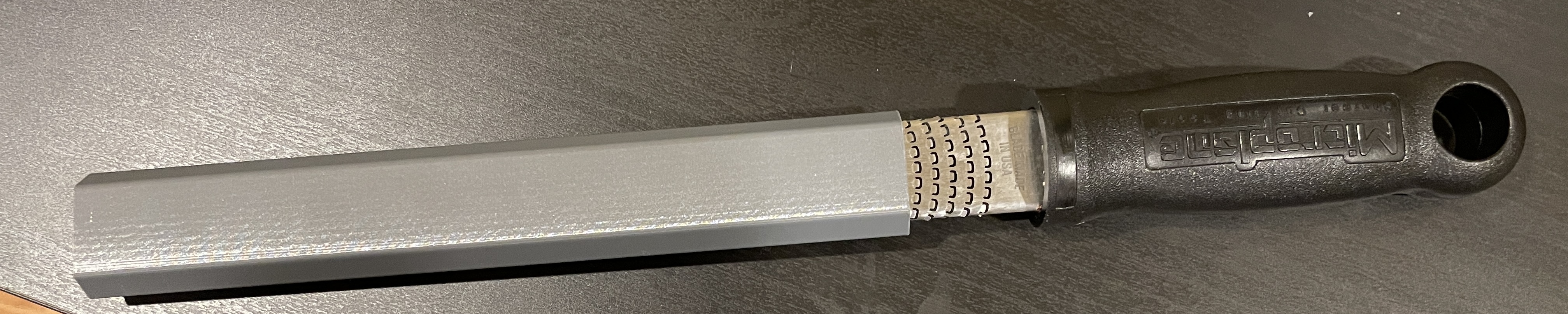 Cái nắp bảo vệ đi kèm với Microplane của tôi bị nứt rồi. Tôi đã tự làm cái này để thay thế. Kích thước có thể cần chỉnh sửa một chút để vừa vặn hoàn hảo. Bạn có thể tải tệp về để tùy chỉnh thêm.