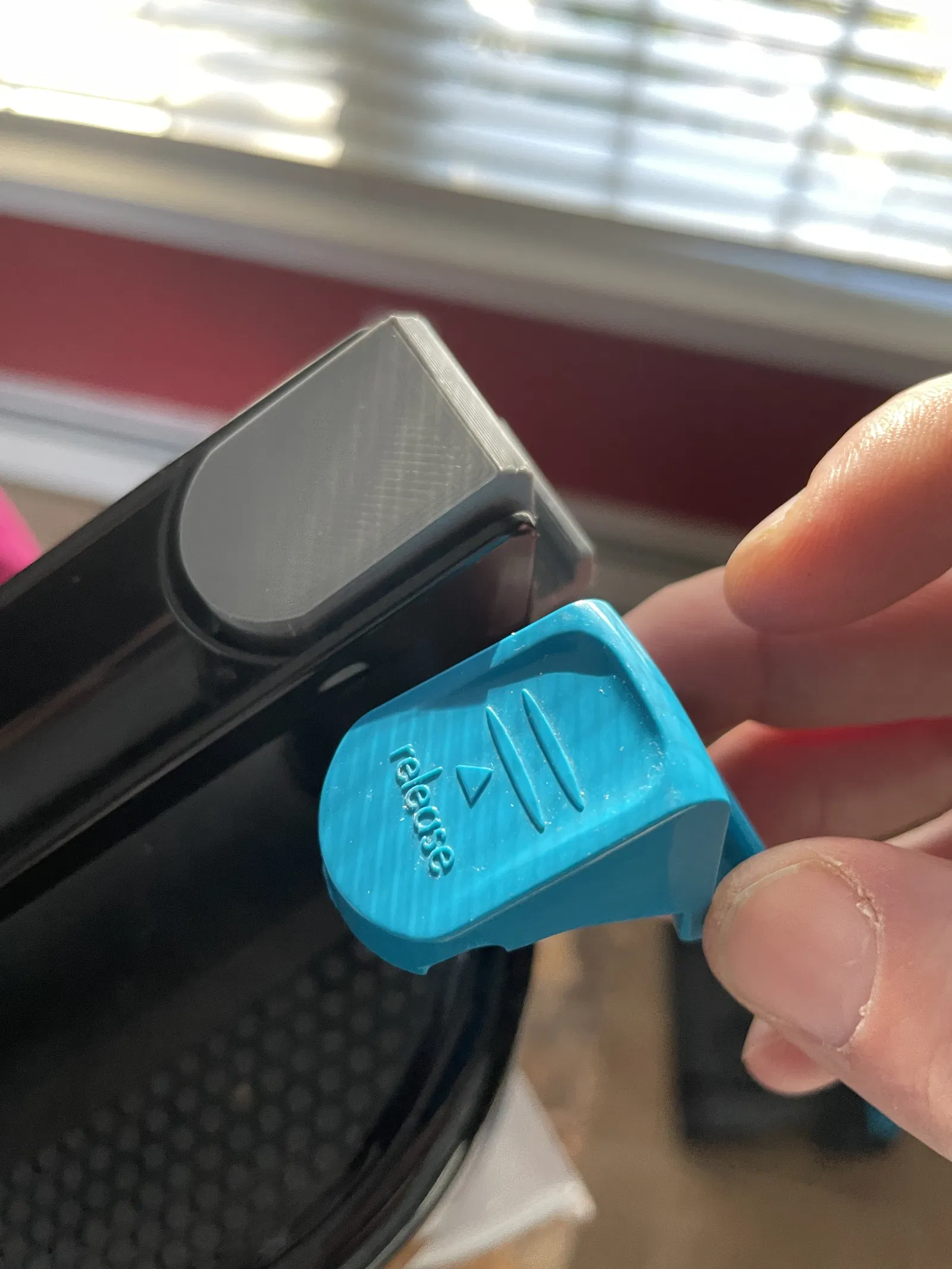 Làm ra để thay thế nút nhả đã bị gãy trên hộp đựng rác của máy hút bụi. Tái sử dụng lò xo zin. Sản phẩm này là nút thay thế cho Bissell Powerforce Compact, giúp bạn sửa chữa máy hút bụi dễ dàng.