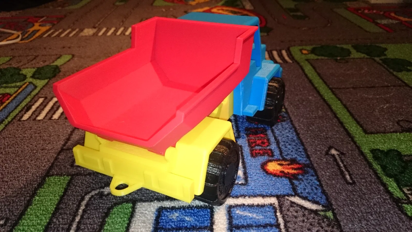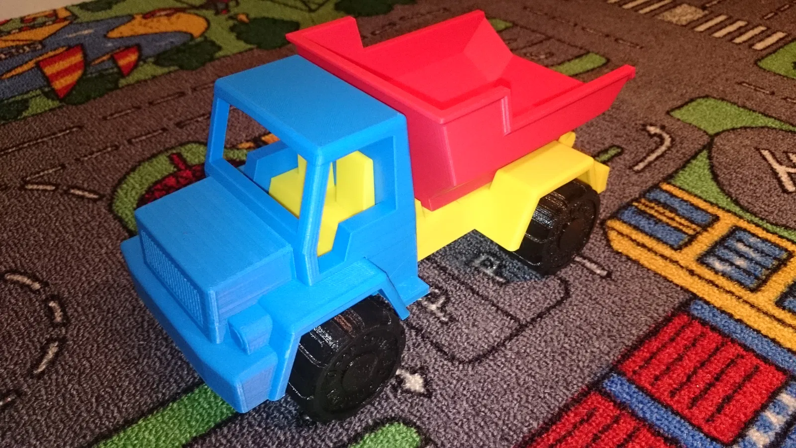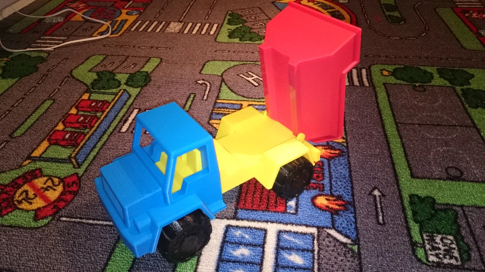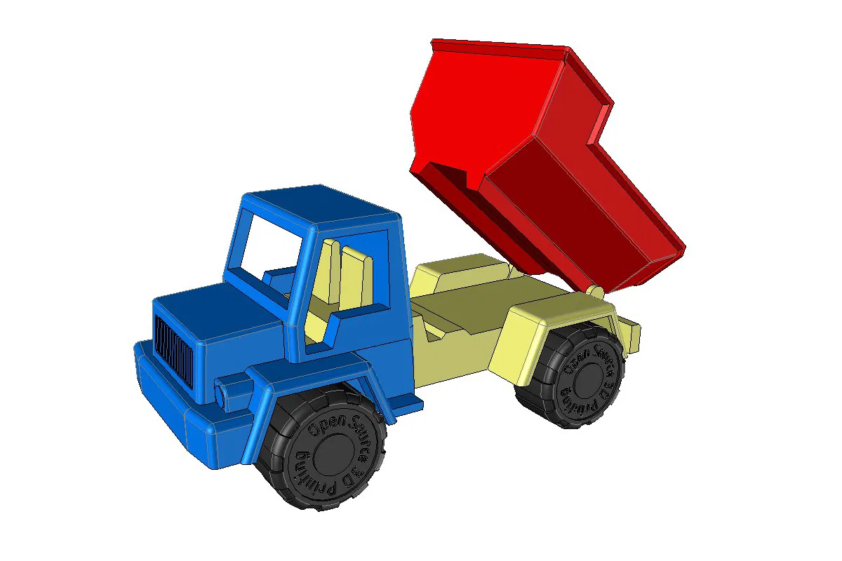 Muốn làm đồ chơi nên đây là món đầu tiên nè. Nếu có thời gian sẽ thêm rơ-moóc. Các bộ phận in bằng ABS, cao độ lớp 0,2mm, không cần support (trừ "Base" có support sẵn cho trục bánh xe). Có thể sẽ làm thêm xe cứu hỏa nữa.