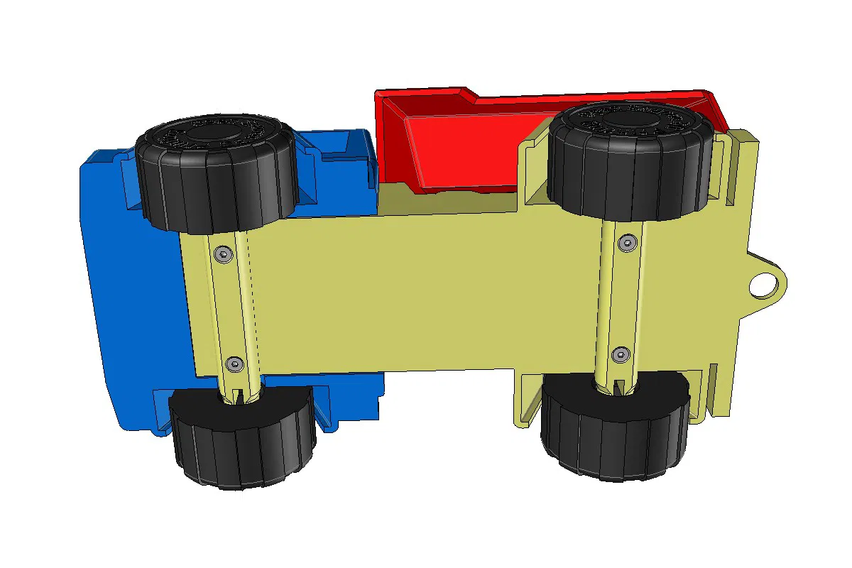 Tất cả các bộ phận đều in bằng ABS, cao độ lớp 0,2mm, không cần support, ngoại trừ cái "Base" có support tùy chỉnh sẵn cho trục bánh xe, chỉ cần bẻ ra là xong.