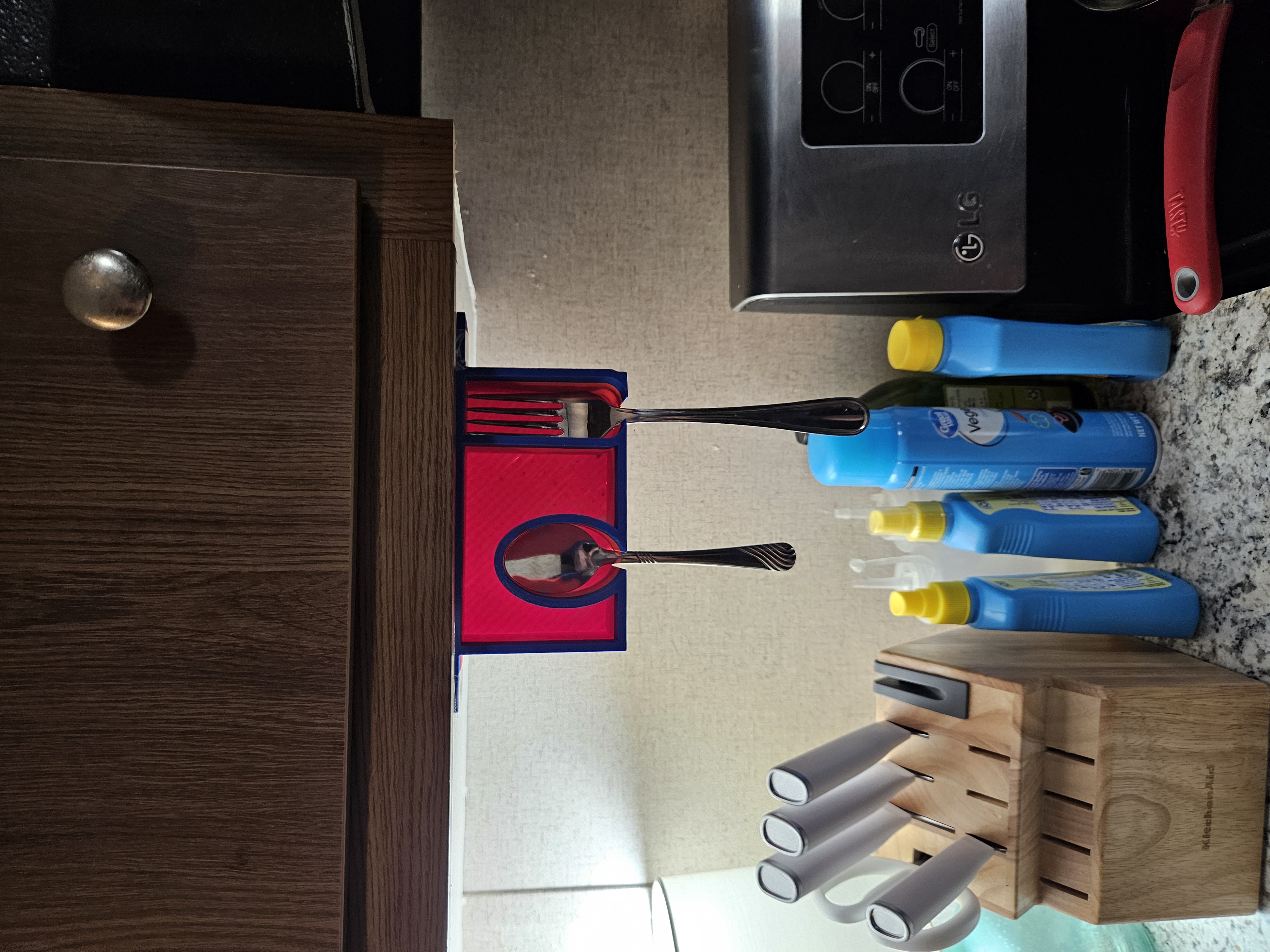 Đây là một cái giữ dao nĩa, nếu bạn bị thiếu không gian ngăn kéo, cái này sẽ gắn dưới tủ và giữ nĩa cùng muỗng.