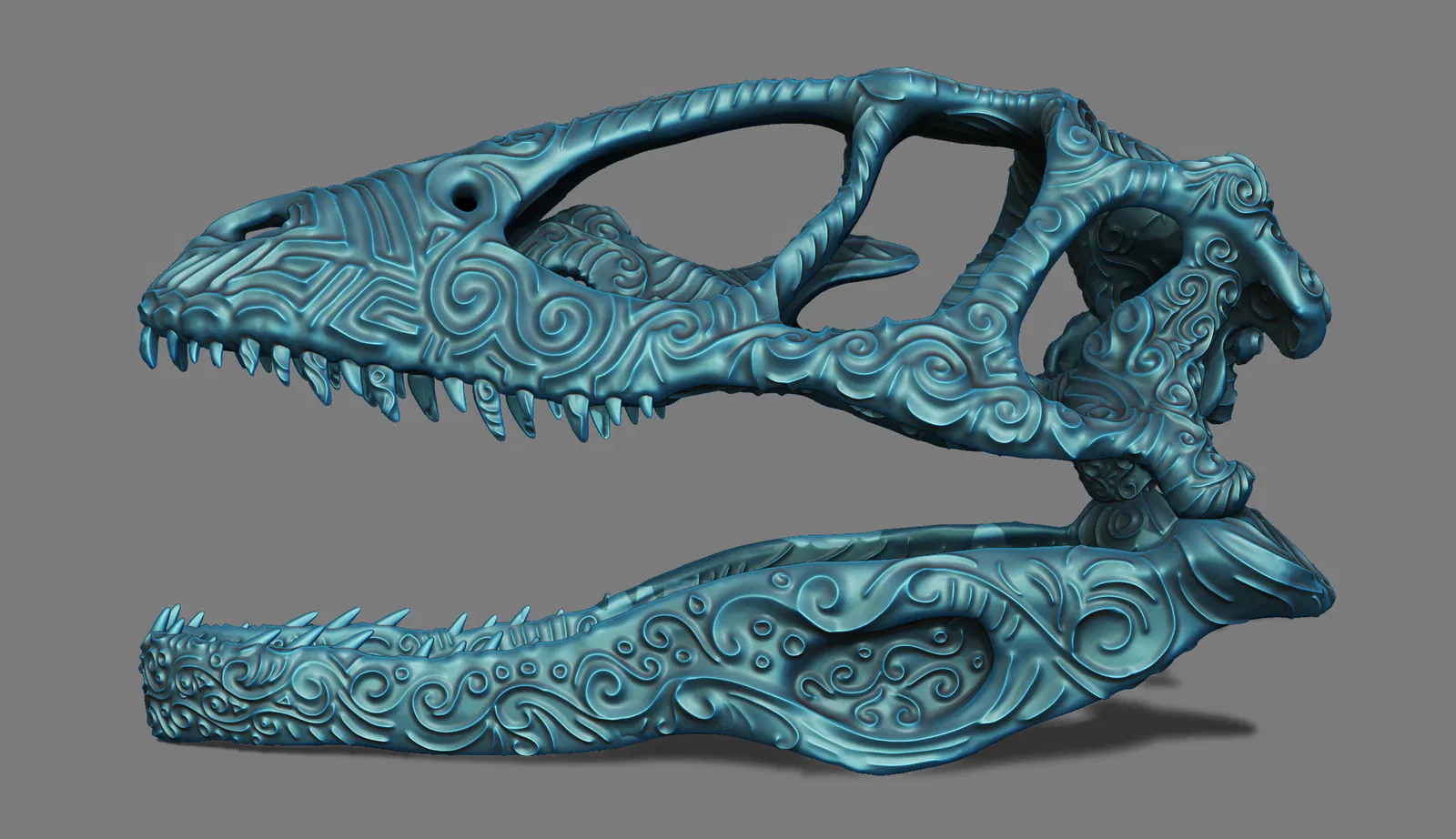 Hộp Sọ Khủng Long Bạo Chúa Có Họa Tiết Hoa Văn Cổ Điển