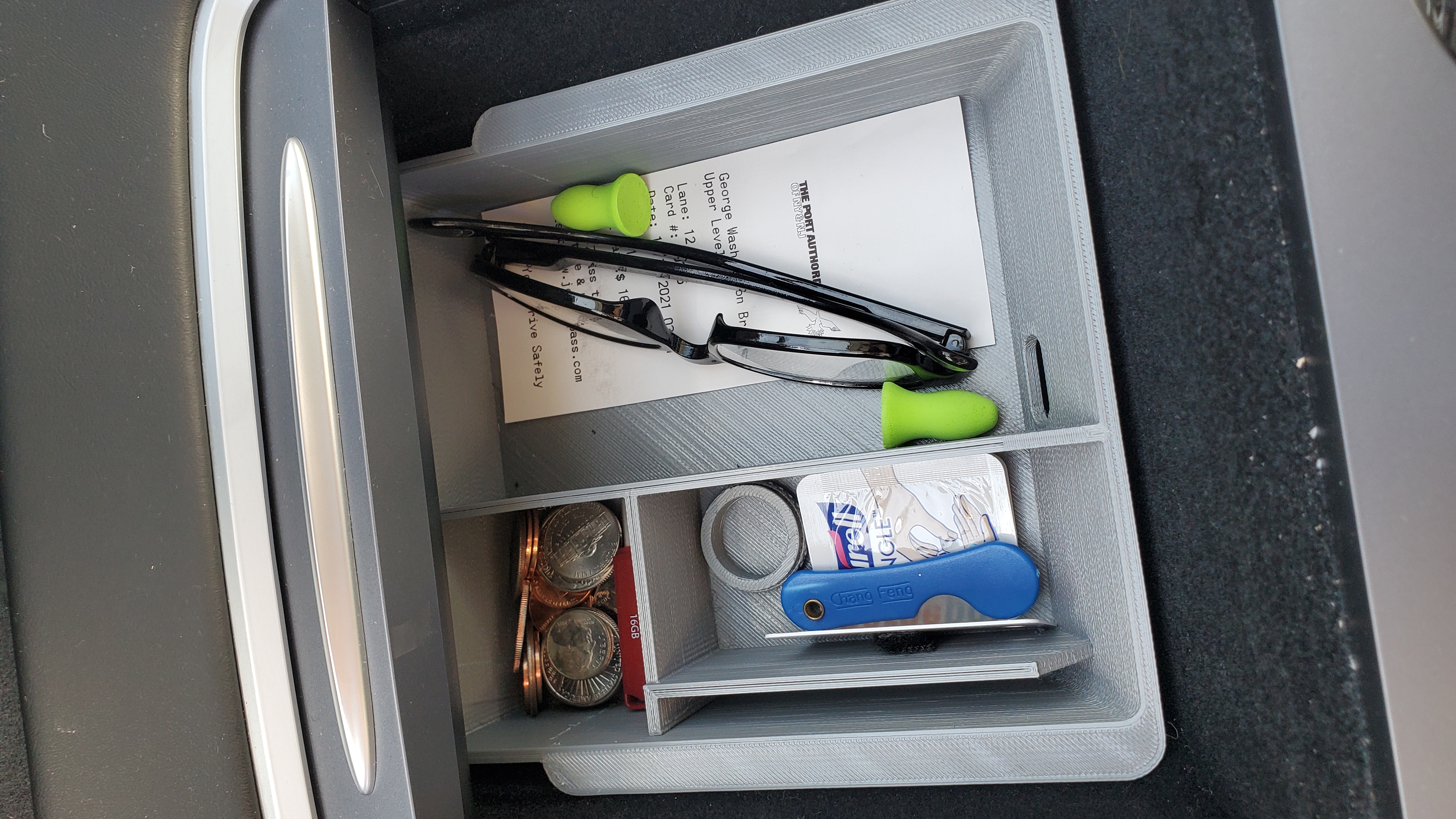 Khay organizer cho khoang điều khiển trung tâm Tesla Model 3/Y đời mới (2021+). Khay có thể trượt, có khe cắm cáp USB tiện lợi. Khuyến nghị in bằng PETG. Thiết kế tối ưu cho việc để kính, điện thoại, tiền xu, thẻ tín dụng và các vật dụng khác.