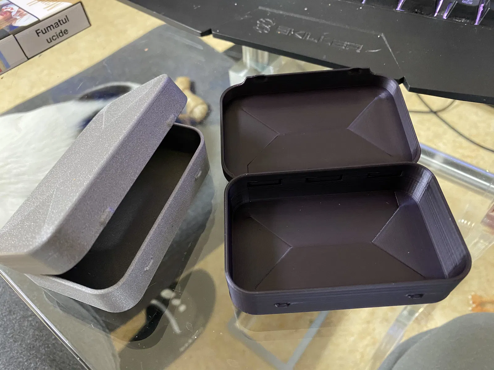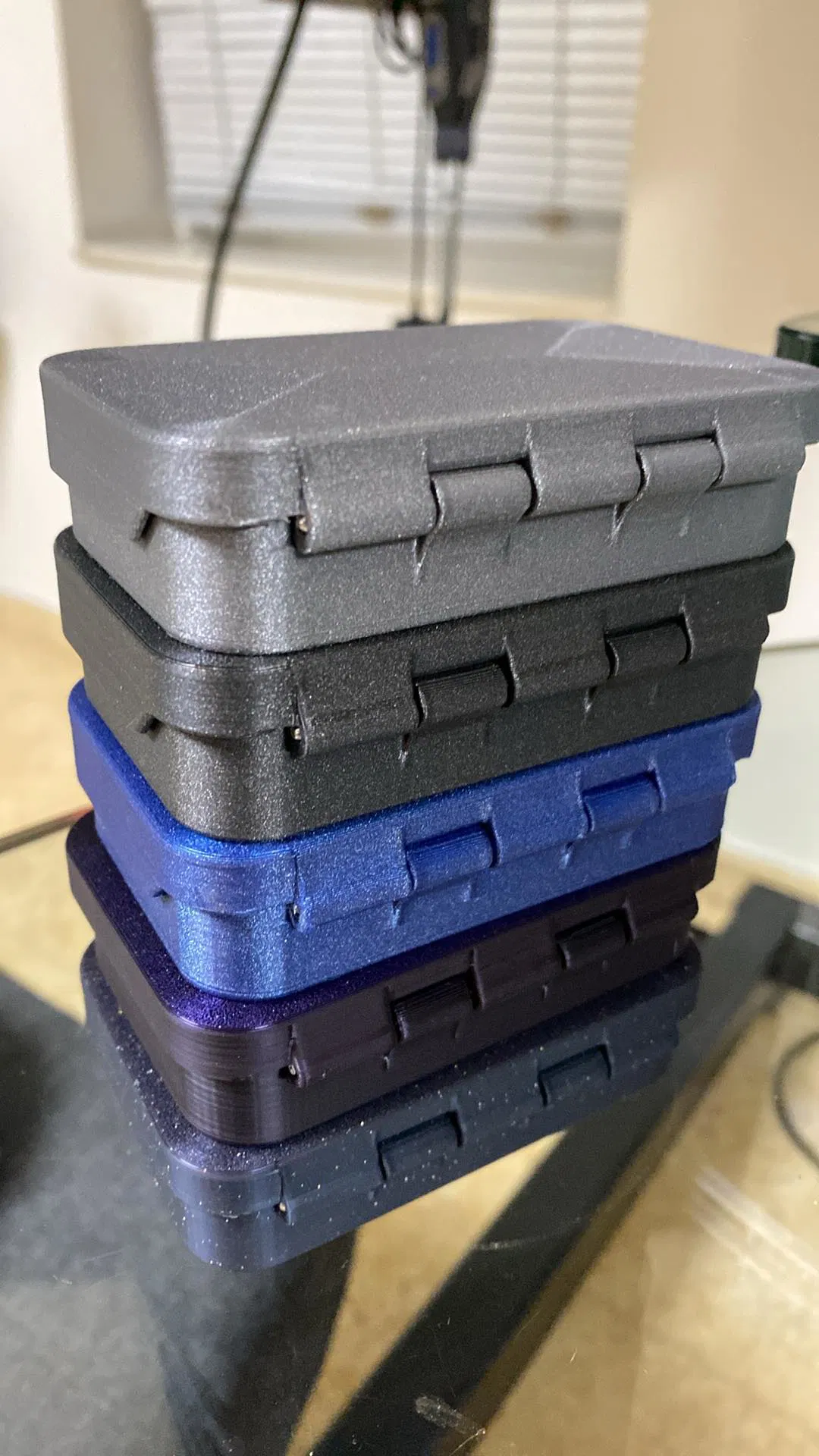 Hộp thiếc Altoids có bản lề chắc chắn hơn, cần thêm thanh kim loại 2mm x 70mm để hoàn thiện. Có phiên bản in-place hoàn toàn bằng nhựa, xem chi tiết tại link.