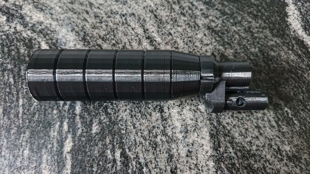Một bản remixed của bộ giảm thanh Crosman 1377 V2. Bản gốc có lỗ 5mm cho viên đạn 4.5mm (.177). Cái này có lỗ 7mm cho viên đạn 5.6mm (.22). Tôi cũng làm cái này thành thiết kế 2 mảnh có ren. Điều này giúp việc quản lý support đơn giản hơn. Ngoài ra, nếu bạn làm gãy thứ gì đó khi lắp cái kẹp nòng súng, bạn chỉ cần in lại cái kẹp nòng súng thay vì cả cái. (Trước đây... in / đợi 17 tiếng / lắp / rắc / trời ạ!)
