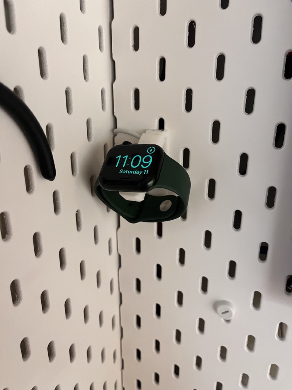 Phụ kiện sạc Apple Watch cho bảng Skadis IKEA, phù hợp cho cả dây đeo kín và hở. Thiết kế có khớp nối in-place tiện lợi, giúp bạn dễ dàng sạc và giữ gọn gàng.